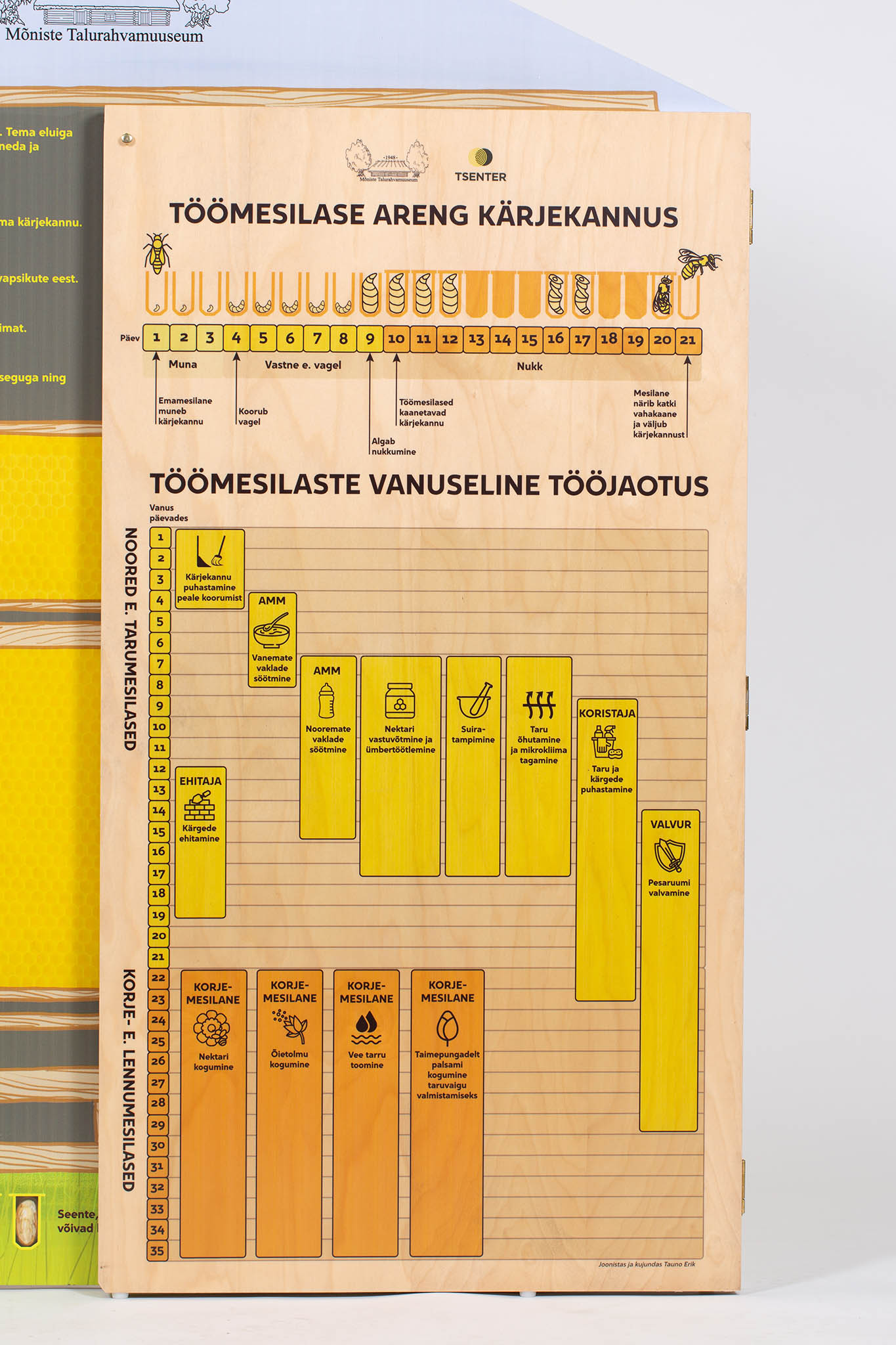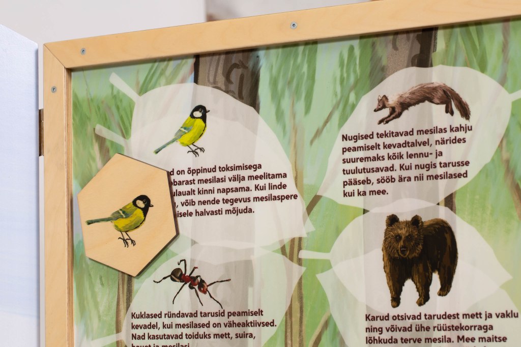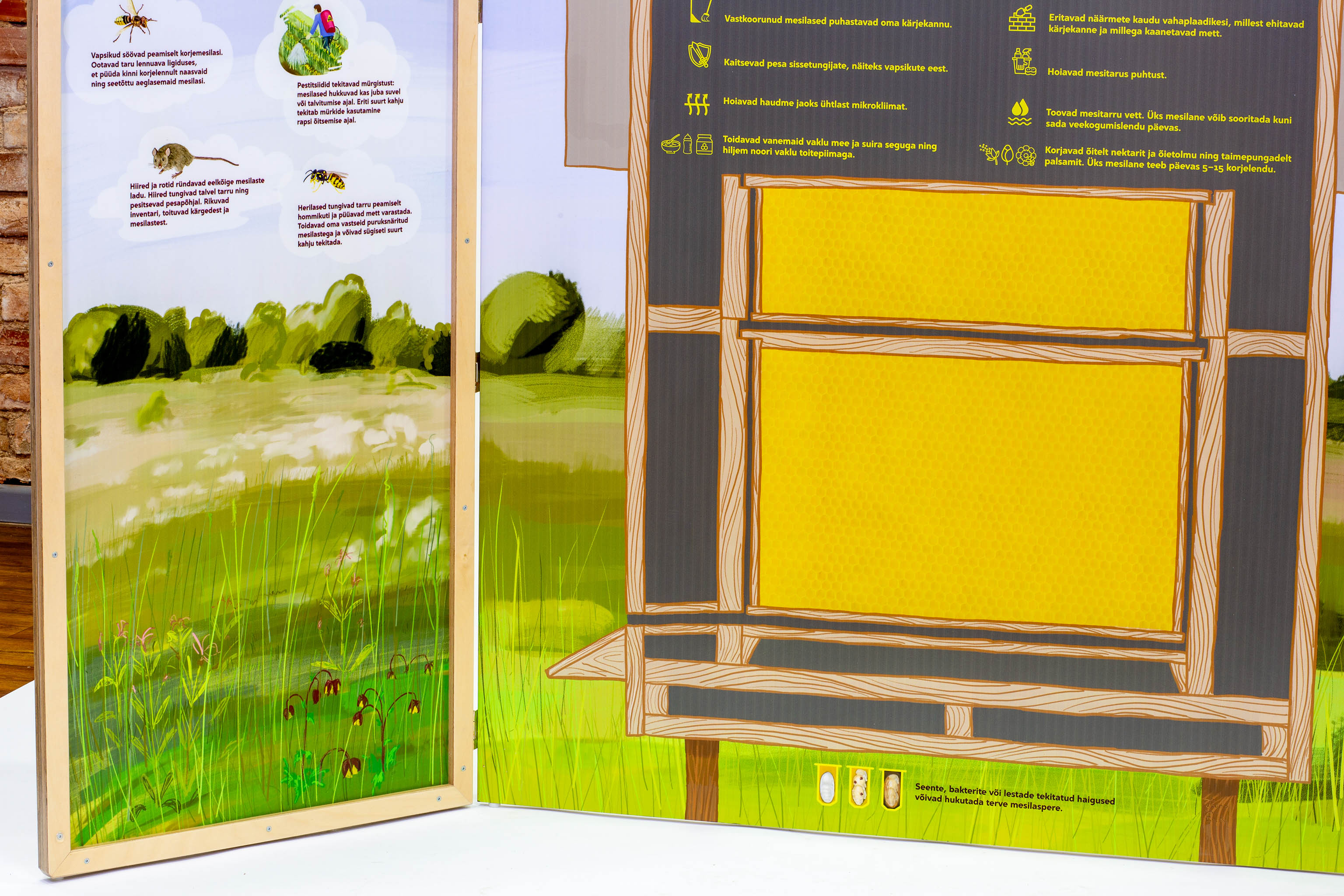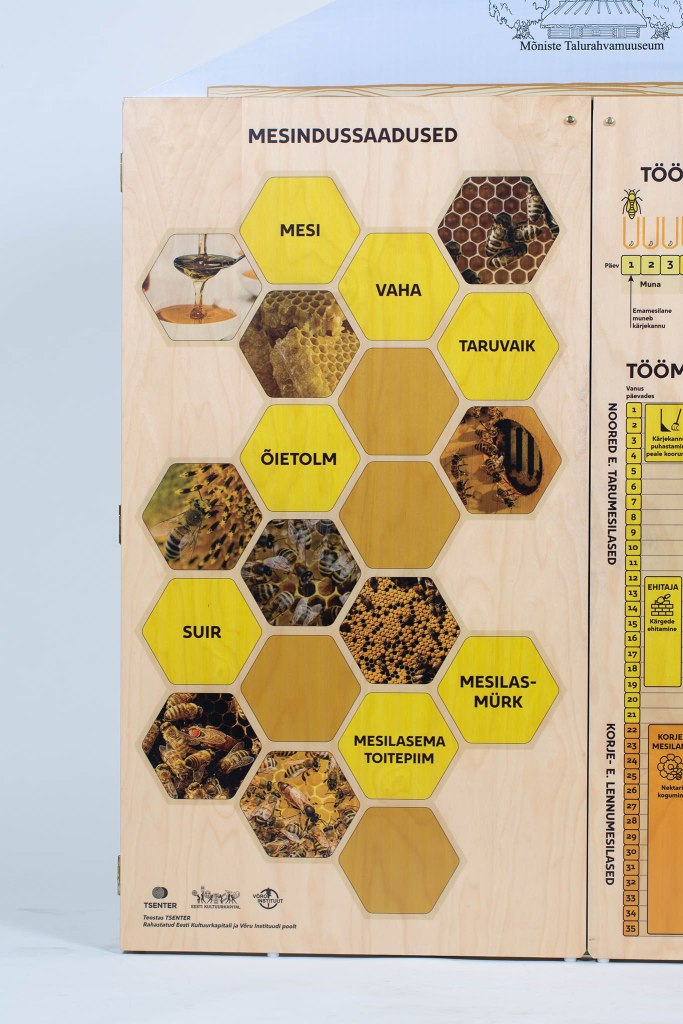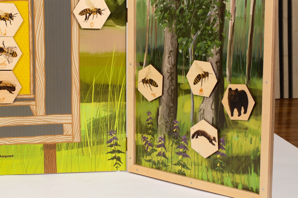 Kujundasin Mõniste Talurahva muuseumile Mesitaru mängu. Joonistasin, digimaali tehnikas, kõik mesilased, taustamaastikud ja muud elukad. Tekstid koostas Liispet Jalandi. Valmistas TSENTER.