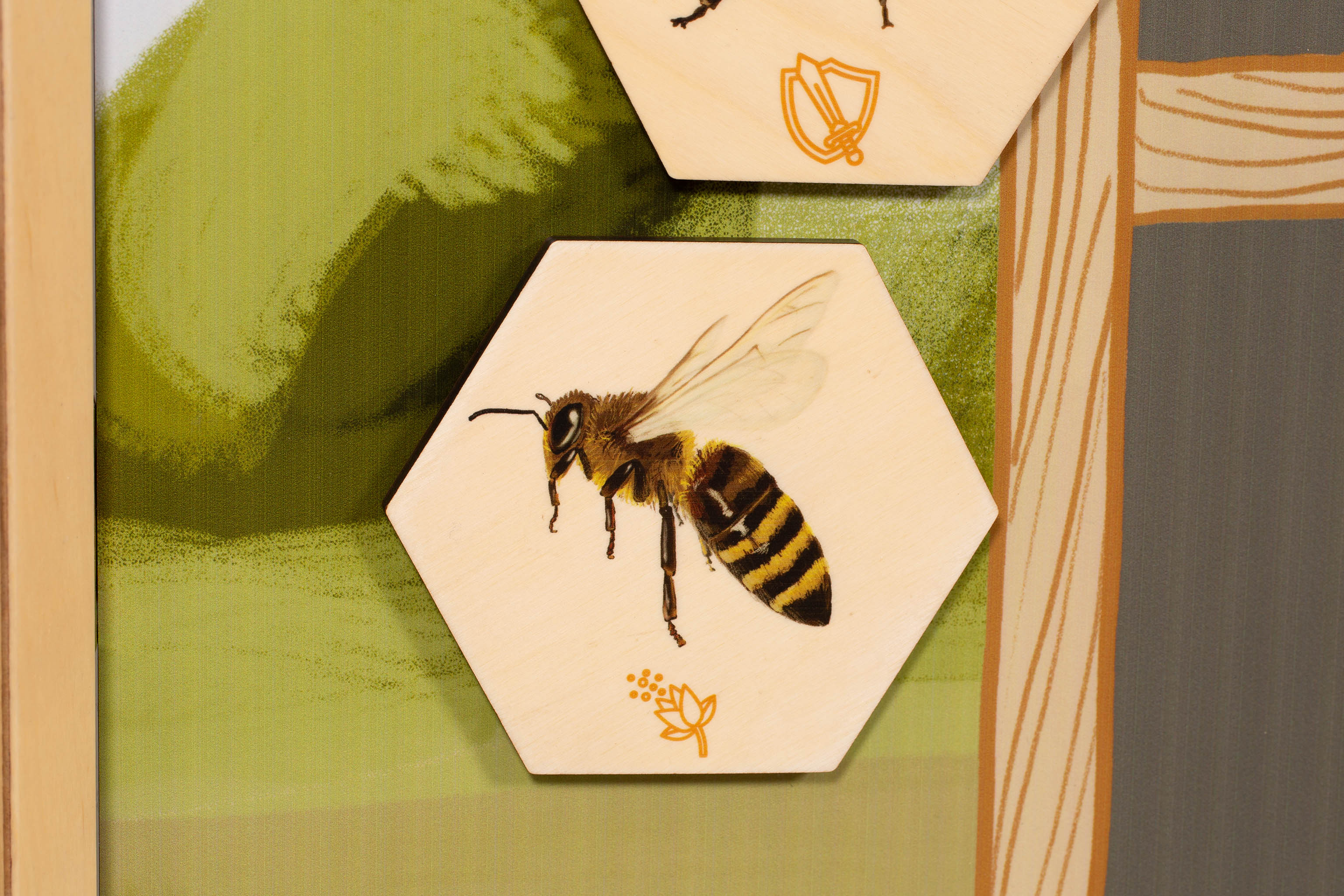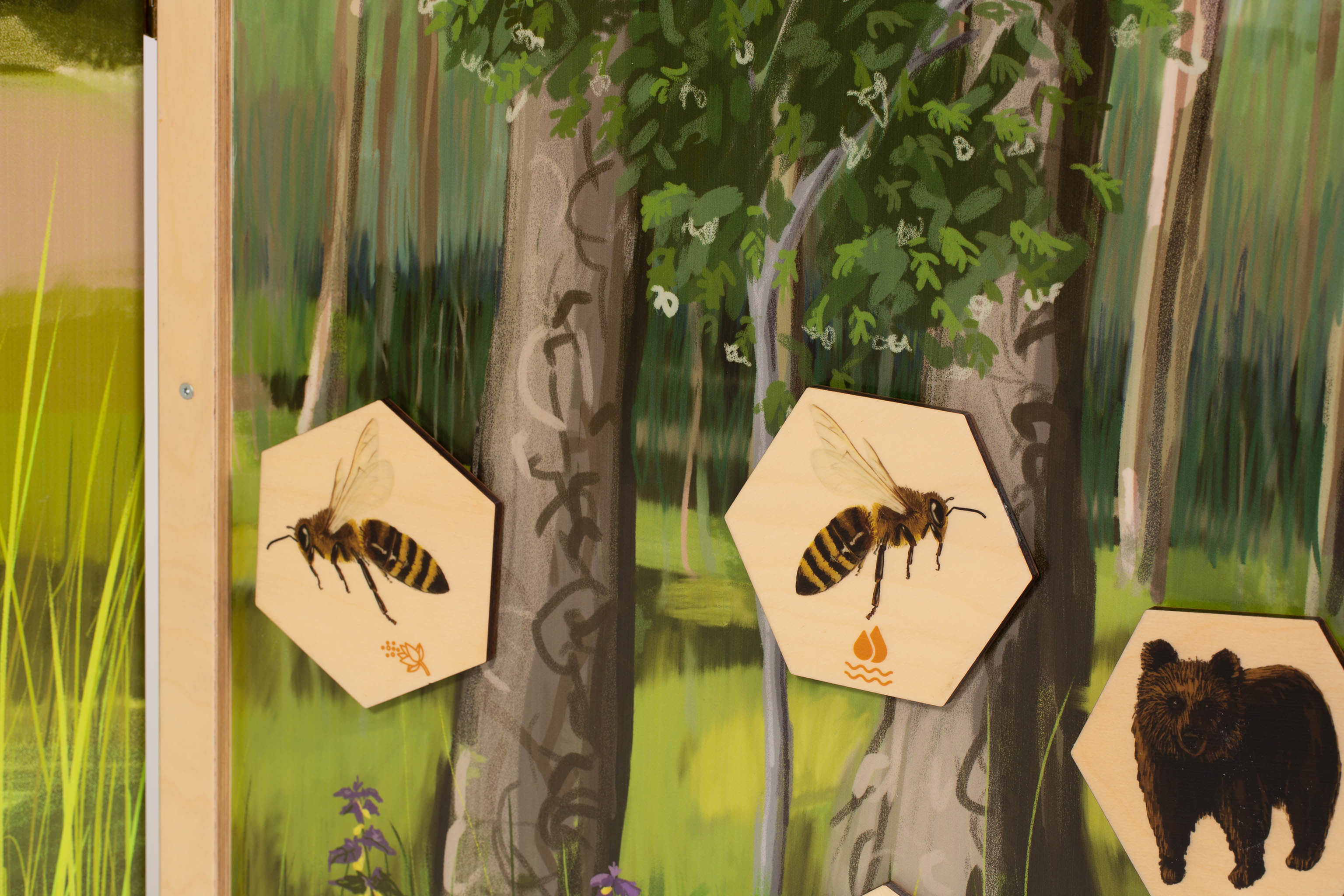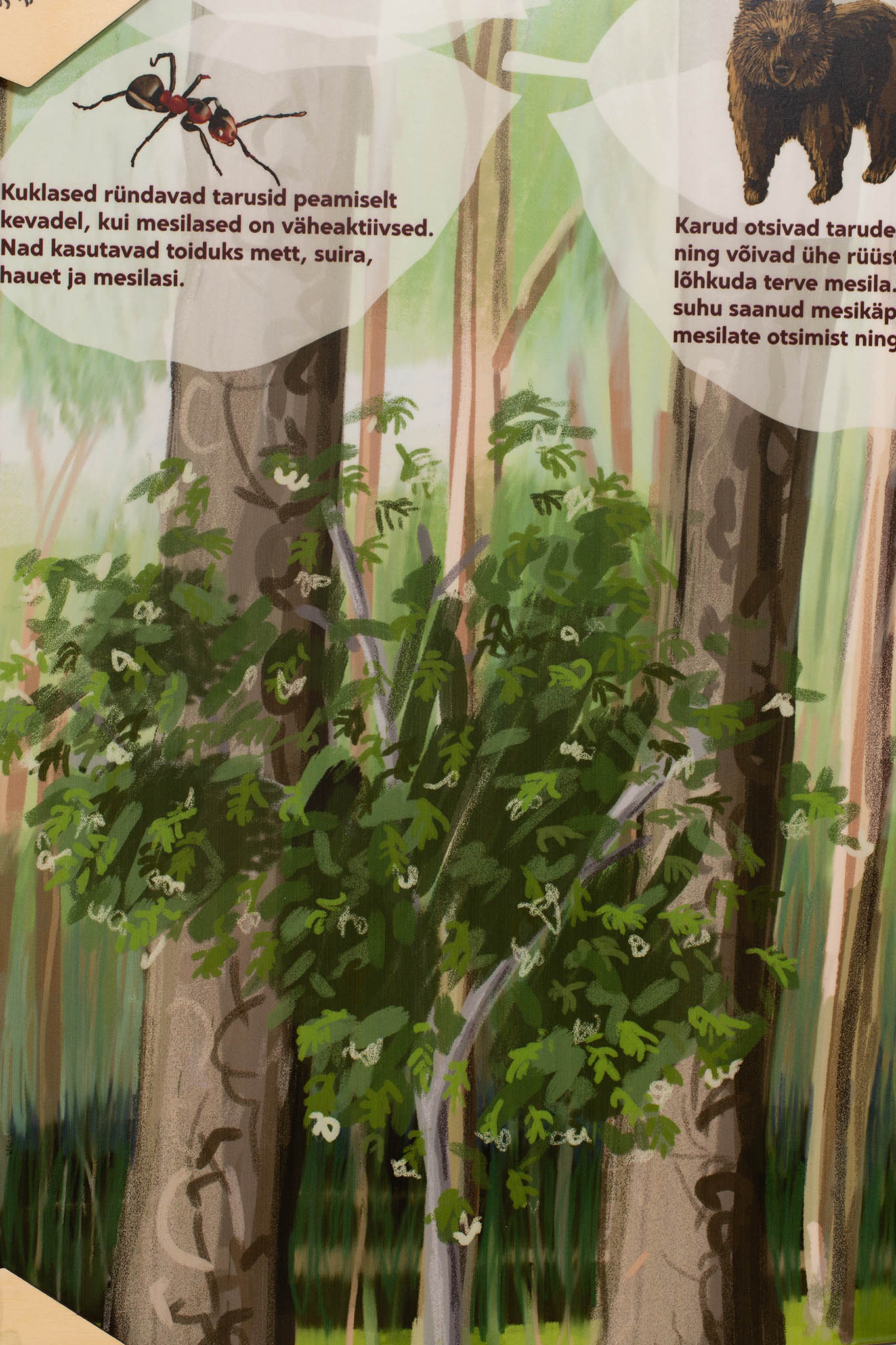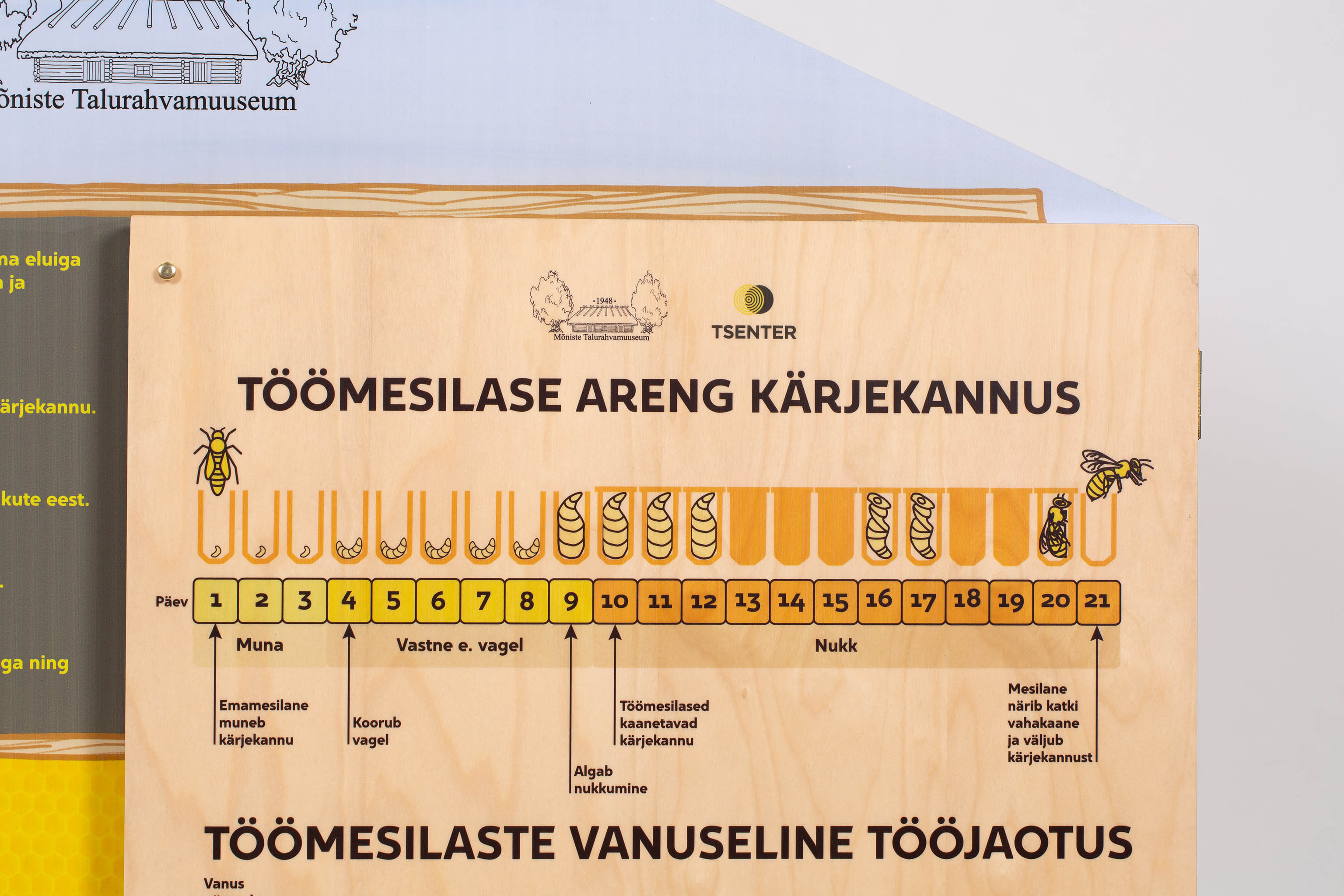 Kujundasin Mõniste Talurahva muuseumile Mesitaru mängu. Joonistasin, digimaali tehnikas, kõik mesilased, taustamaastikud ja muud elukad. Tekstid koostas Liispet Jalandi. Valmistas TSENTER.