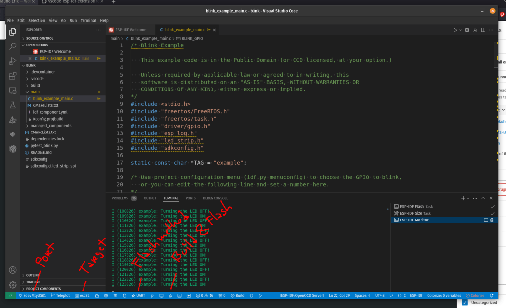 Build the project, use the ESP-IDF: Build your Project command (CTRLEB keyboard shortcut).