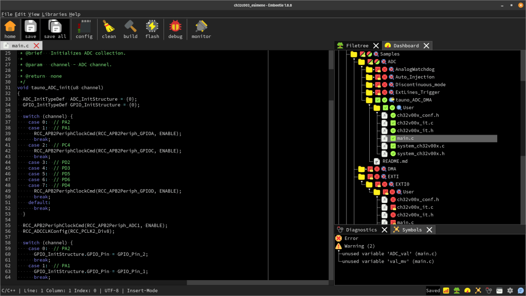 * https://github.com/Community-PIO-CH32V/platform-ch32v/blob/develop/examples/adc-cpu-temp-none-os/src/main.c