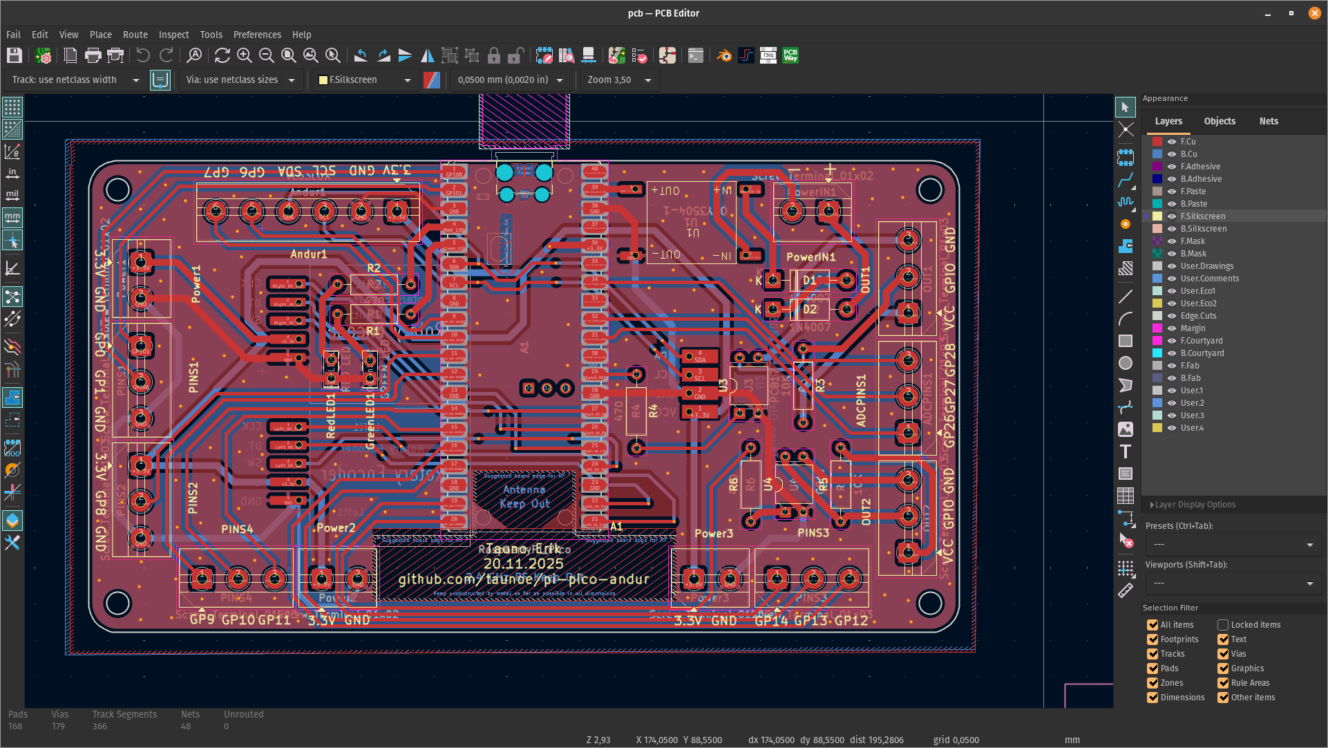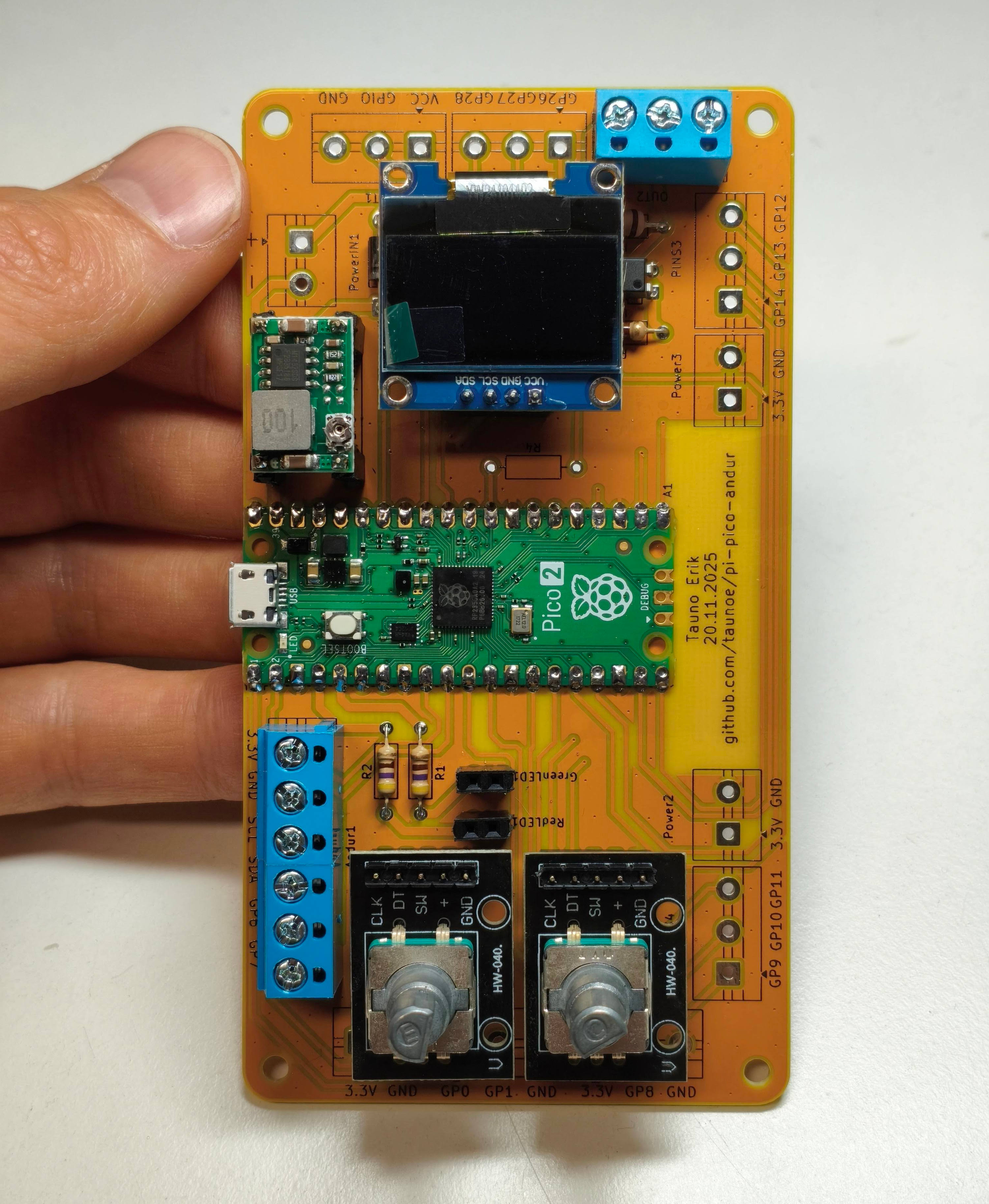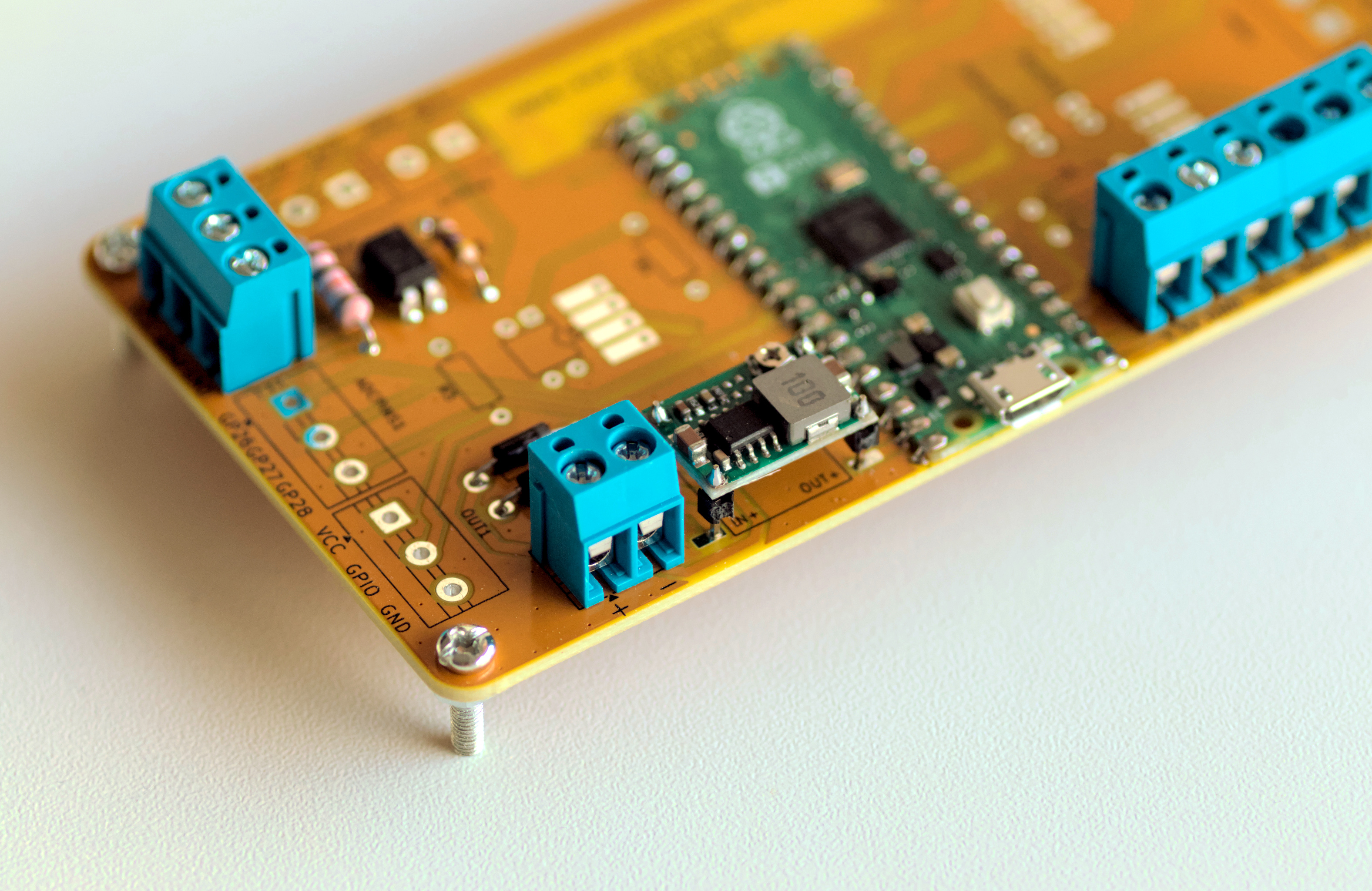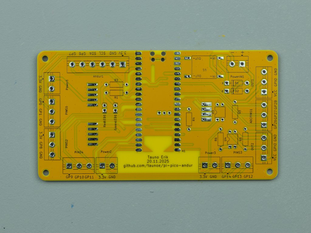 My design is now more like a Raspberry Pi Pico expansion board. And maybe next time I will make it smaller and with fewer pins. But now I added them all so I can use it more than one purpose.