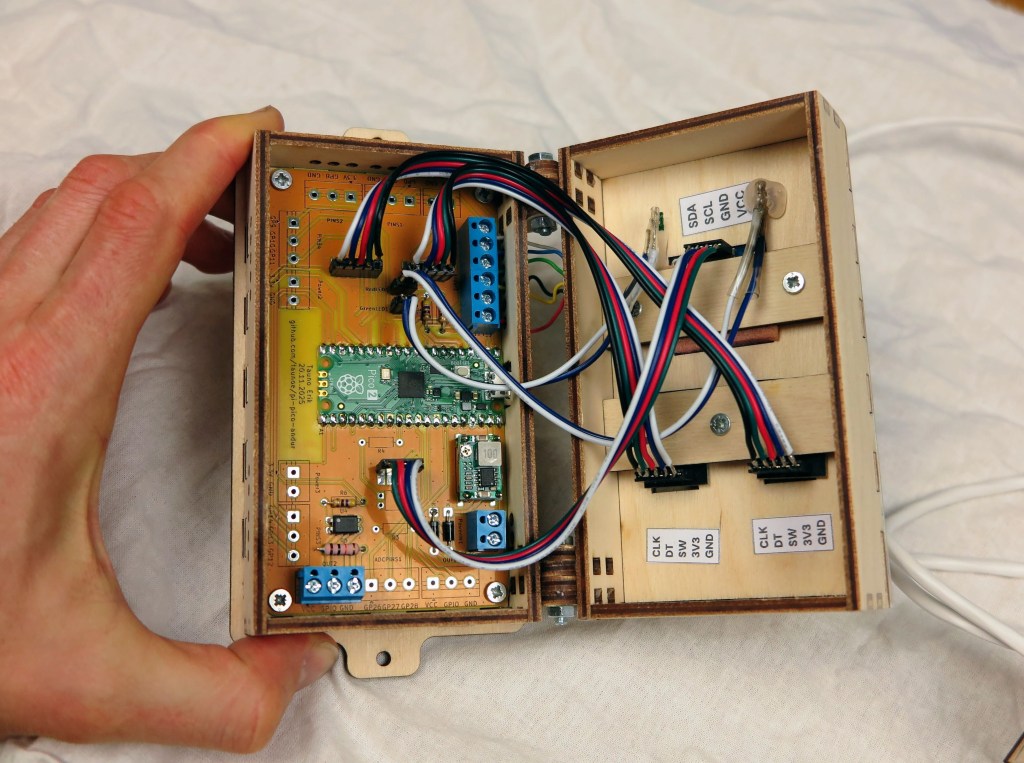 I made a simple case for the sensor from plywood. It is made of 4 mm plywood and laser cut.