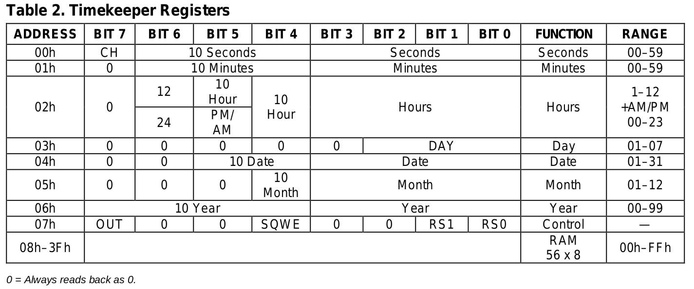 BIT 7: CH – clock halt pit. When set to 1, the oscillator is disabled.