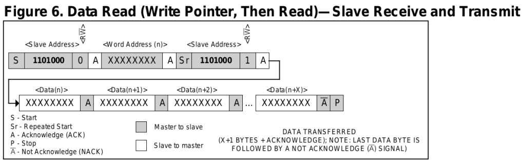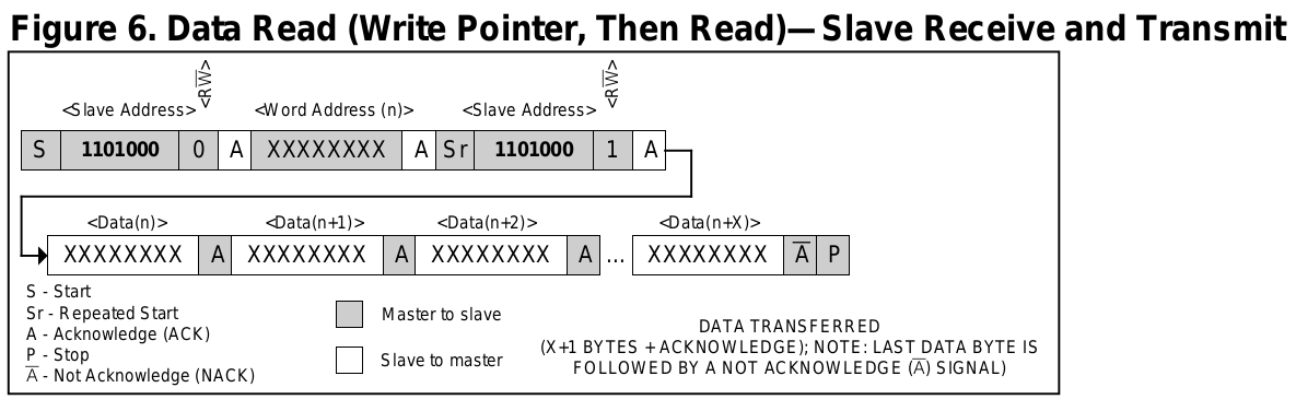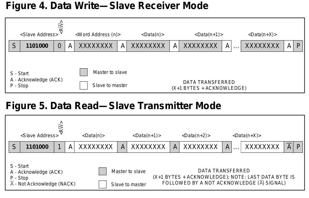 Address (7-bit) 1101000 = 0x68 followed by the direction bit (R/W).