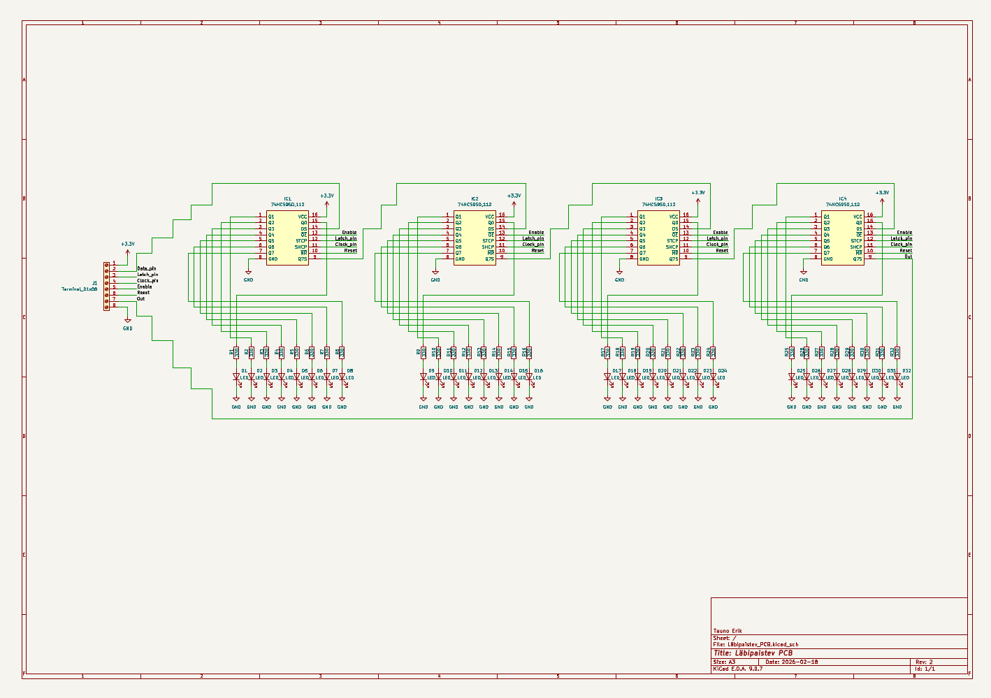 This was made by PCBWay. I designed it in KiCad. It’s basically four shift registers and LEDs. Since it was my first time seeing a transparent PCB, I designed it to explore how it could be used. It’s not transparent like glass. It’s more like translucent and diffuses light. One advantage is that you can see all the tracks.