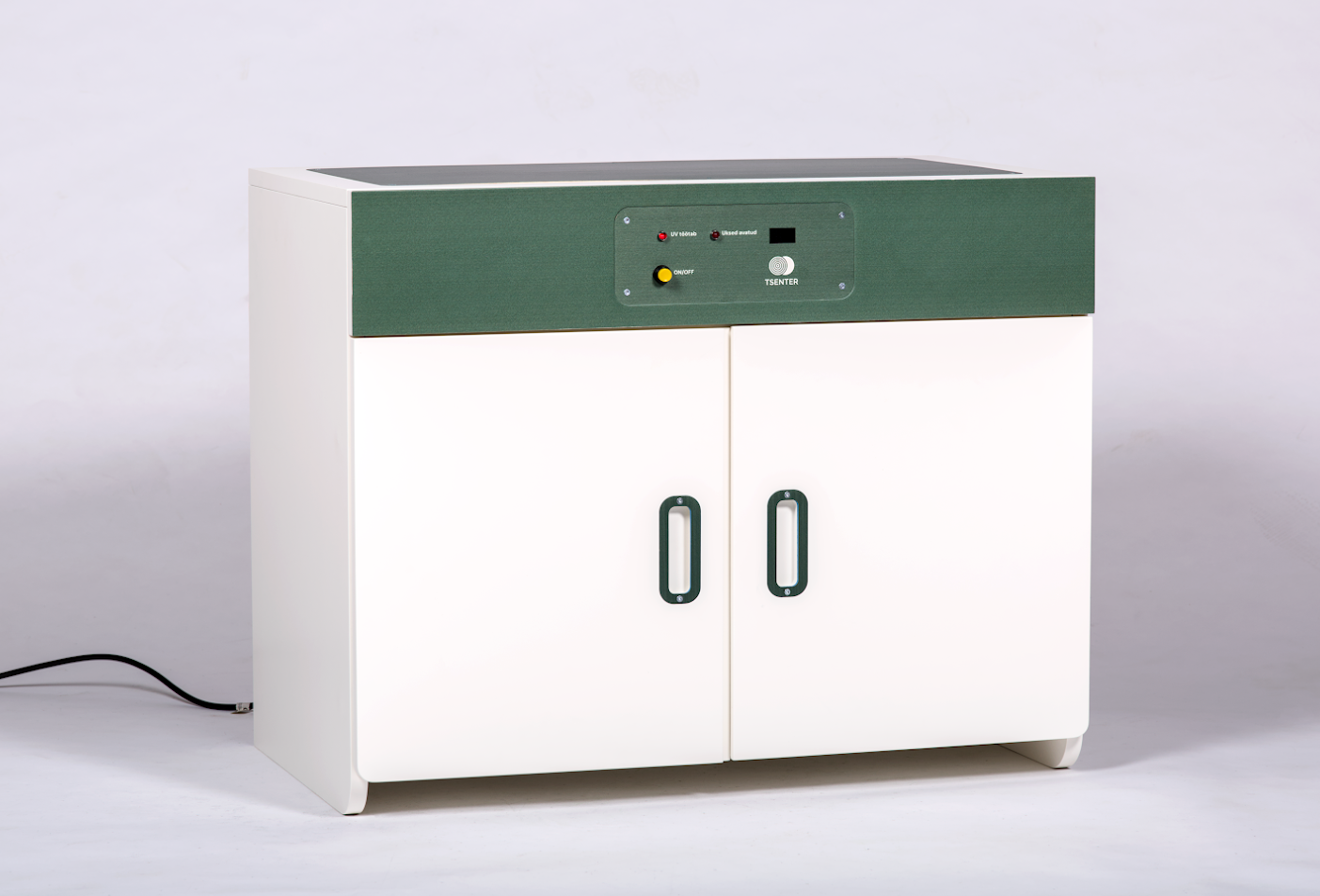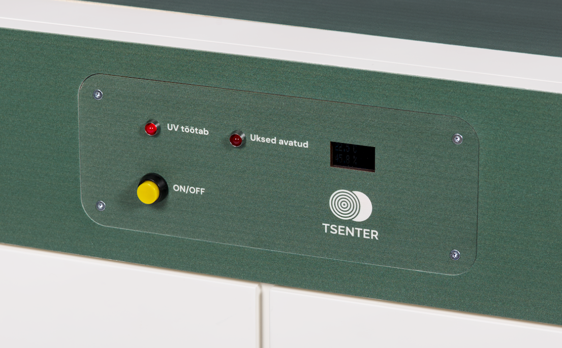 The cabinet contains six UV radiation lamps. The upper part contains all the electronics, control elements and fans.