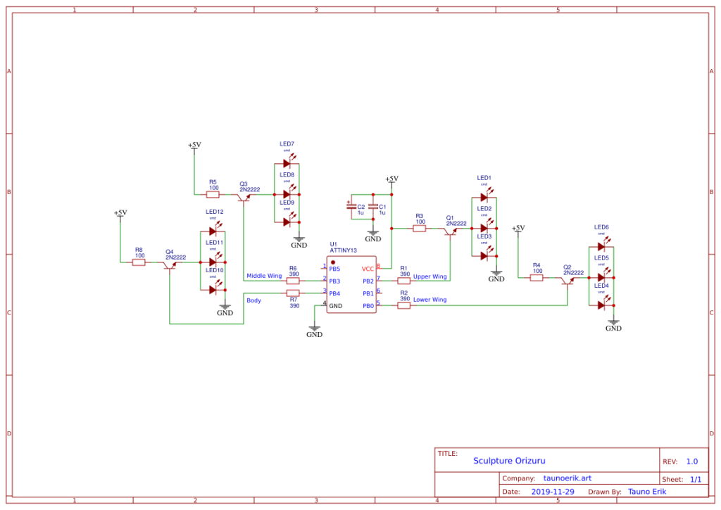 First i made paper crane and the rest is copy-paste basic forms. The basic shapes are actually simple and flat. The most difficult part is soldering SMD components.