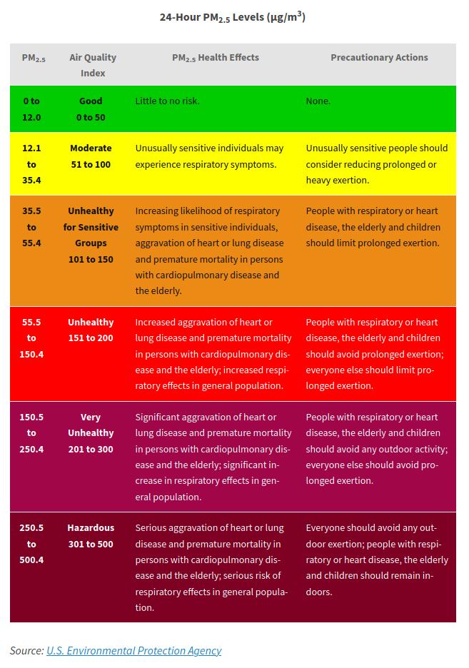 - Ultrafine dust particles with a diameter of 0 – 2.5 micrometres (μm/m3). Output PM2.5
