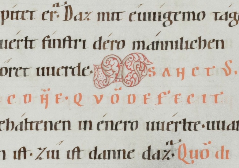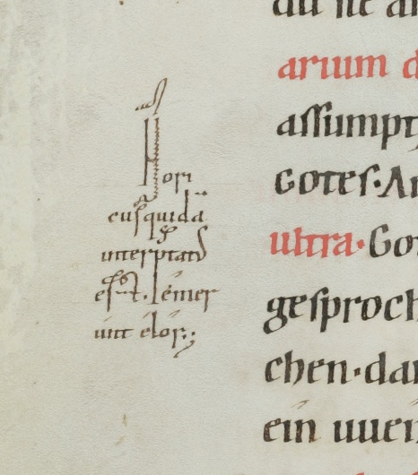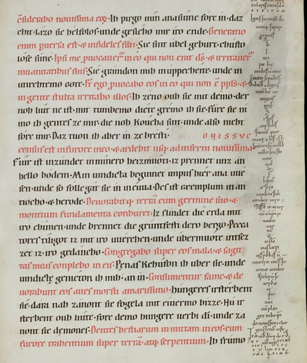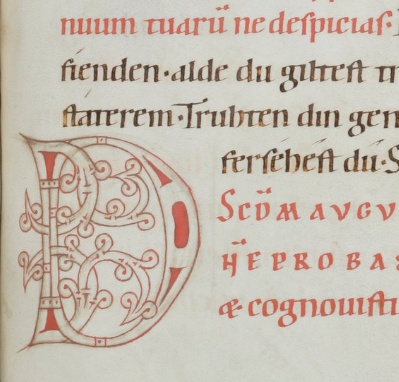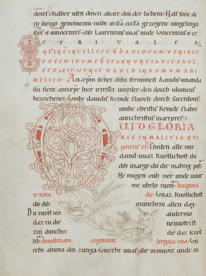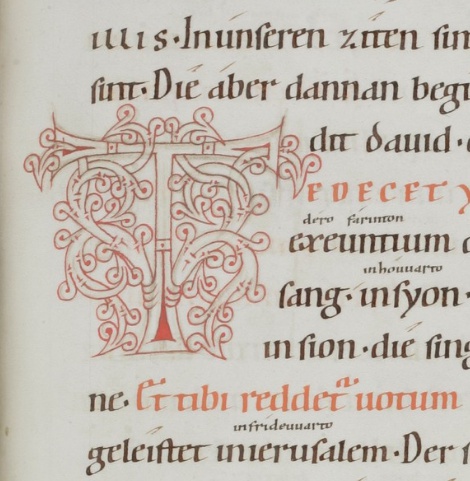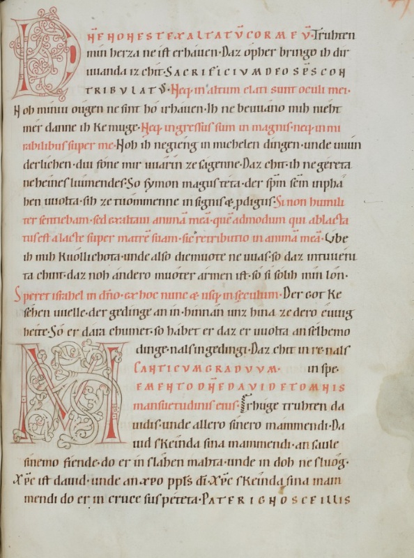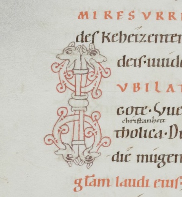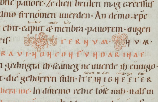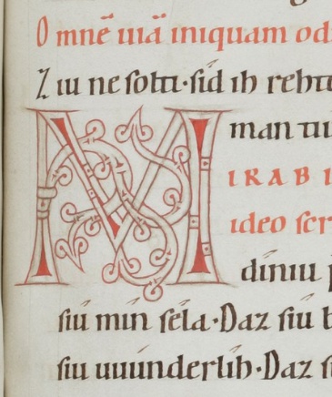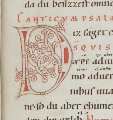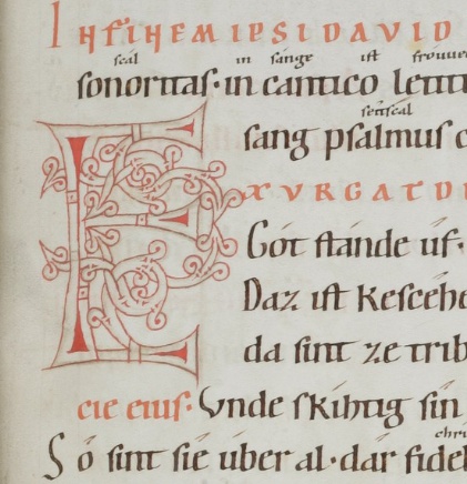 Old High German translation and commentary on the Psalms by the monk Notker the German of St. Gall, dating from around the year 1000. This 12th century copy from Einsiedeln is the only extant complete copy.