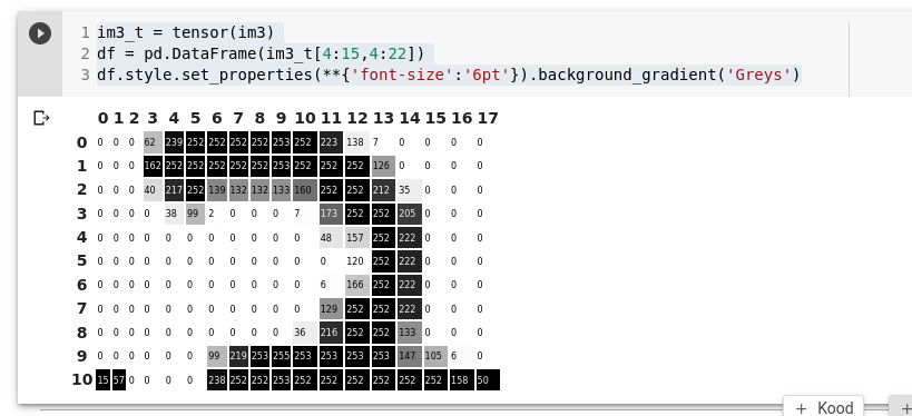 Saame kuvada veel täpsemini pilti ja pikslite väärtusi: