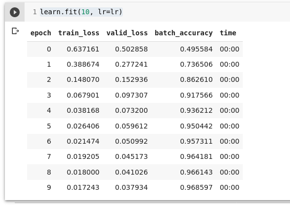 fastai on ka Learner-fit mida saame kasutada train_model asemel