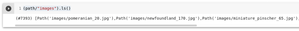 Kuvatakse pilte arv (#7393) ja algust failide nimekirjast. Näeme, et failinimi koosneb tõu nimest numbrist ja faililaiendist. Koerte tõud on algavad väikse tähega ja kassid suure tähega.