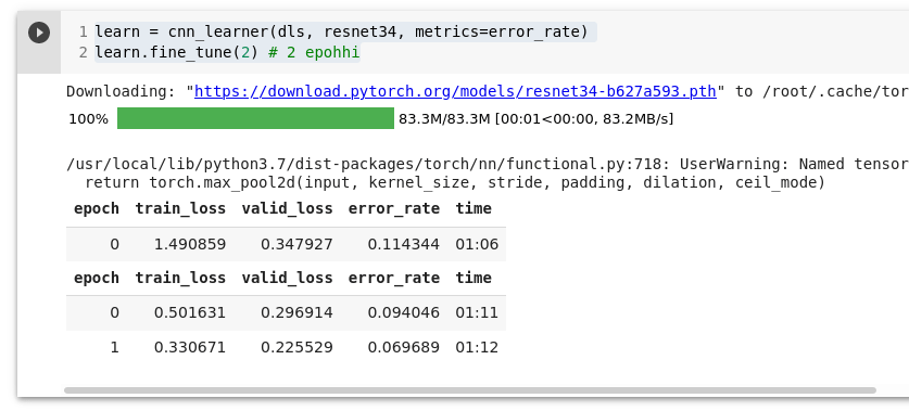 learn.fine_tune(2) # 2 epohhi