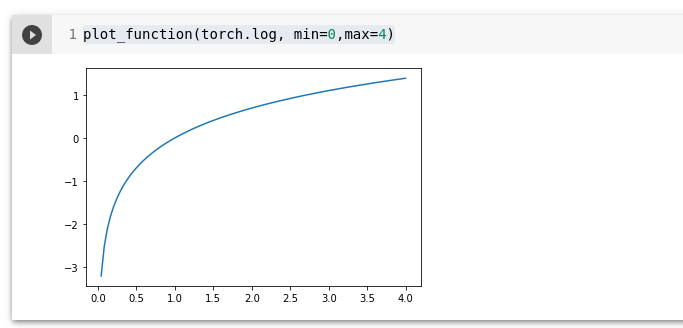 plot_function(torch.log, min=0,max=4)