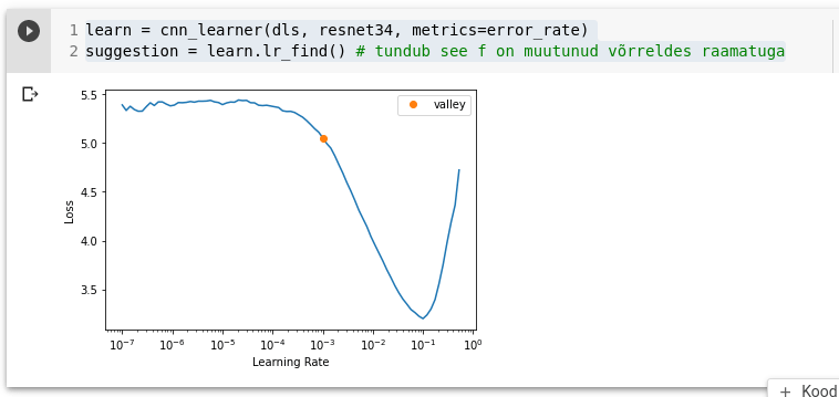 item_tfms – kärpida (crop) pildid kas täis laiuses või kõrguses. Treening andmestiku valitakse kärpimise asukoht juhuslikult. Valiteerimisandmestiku alati keskmine ruut.