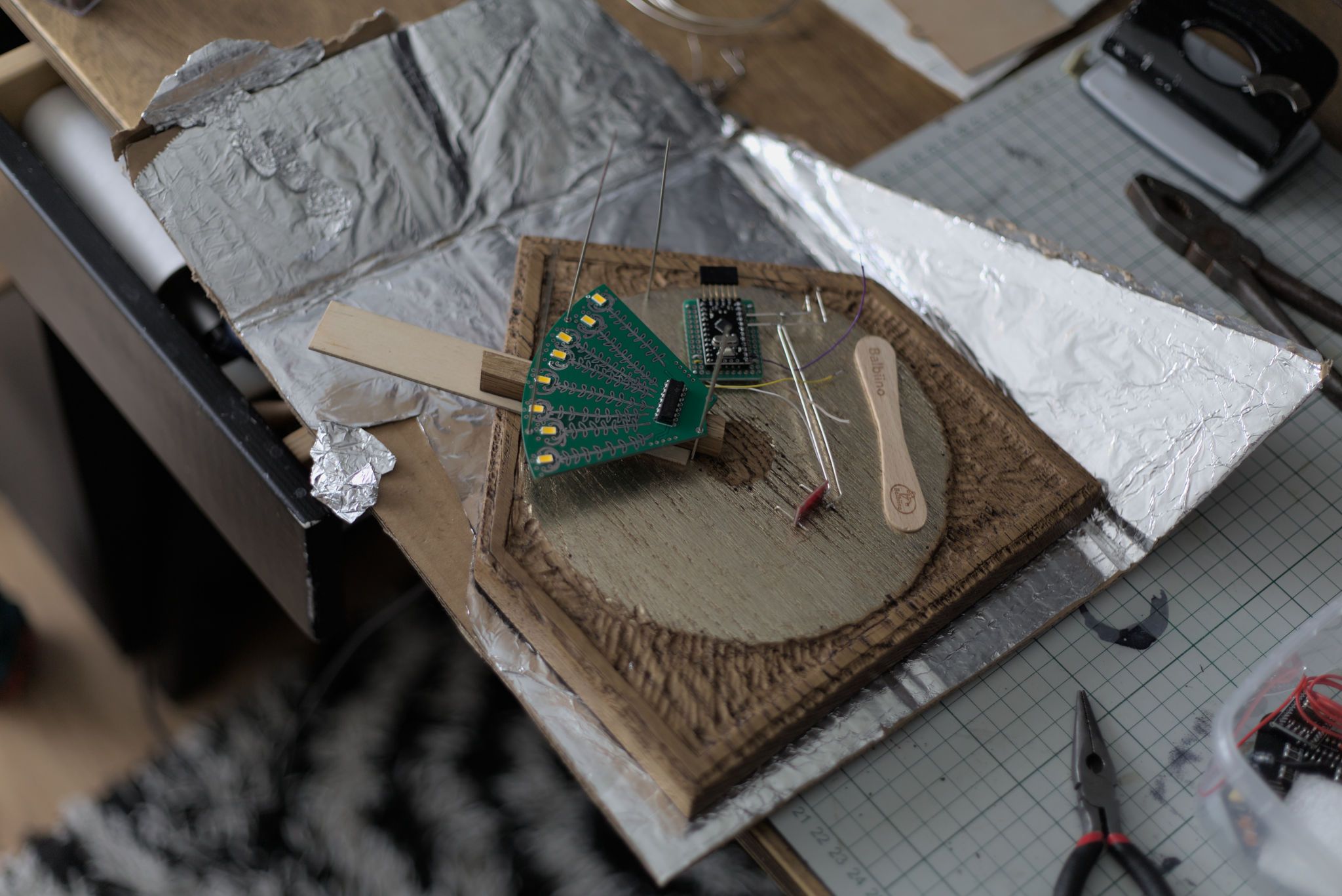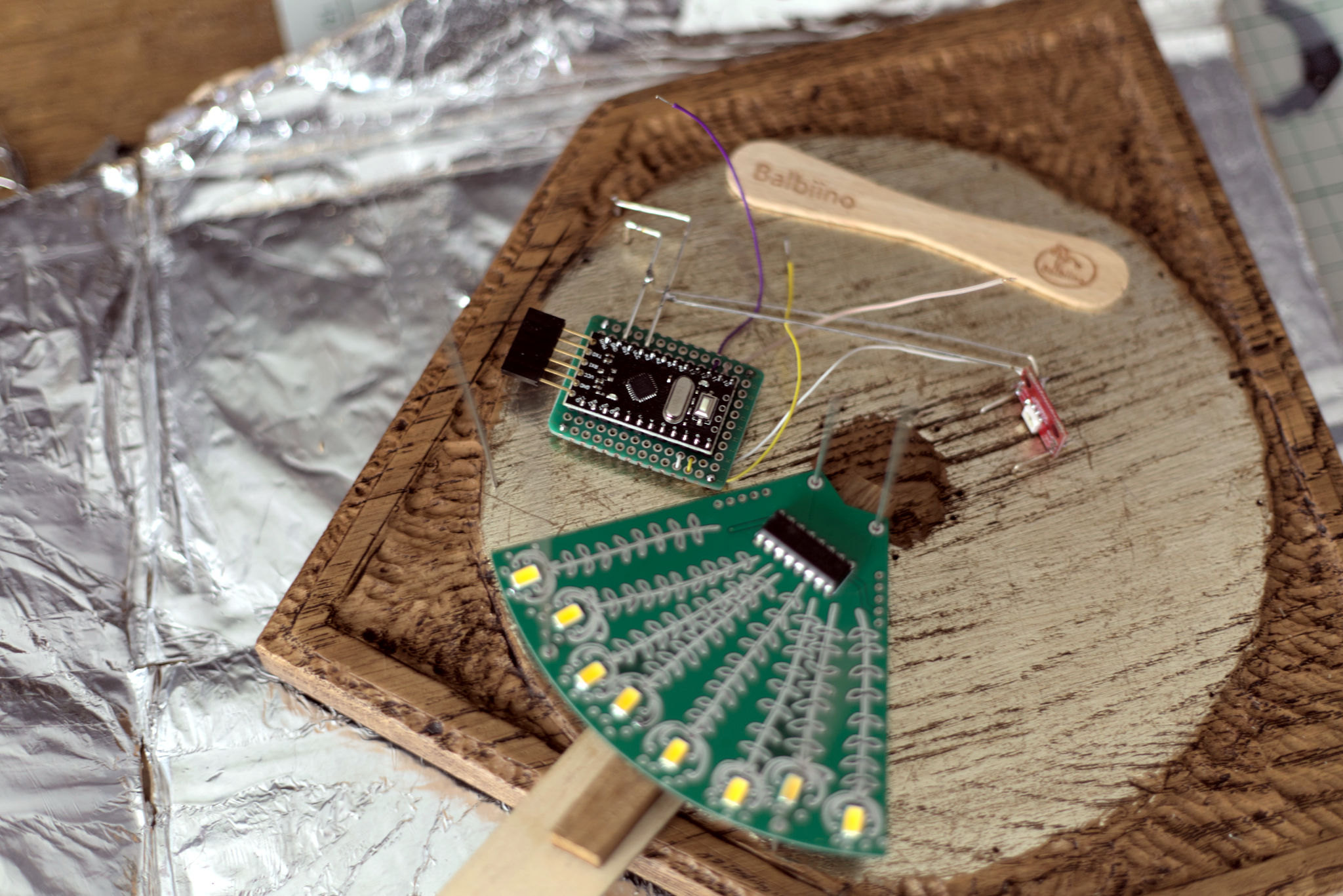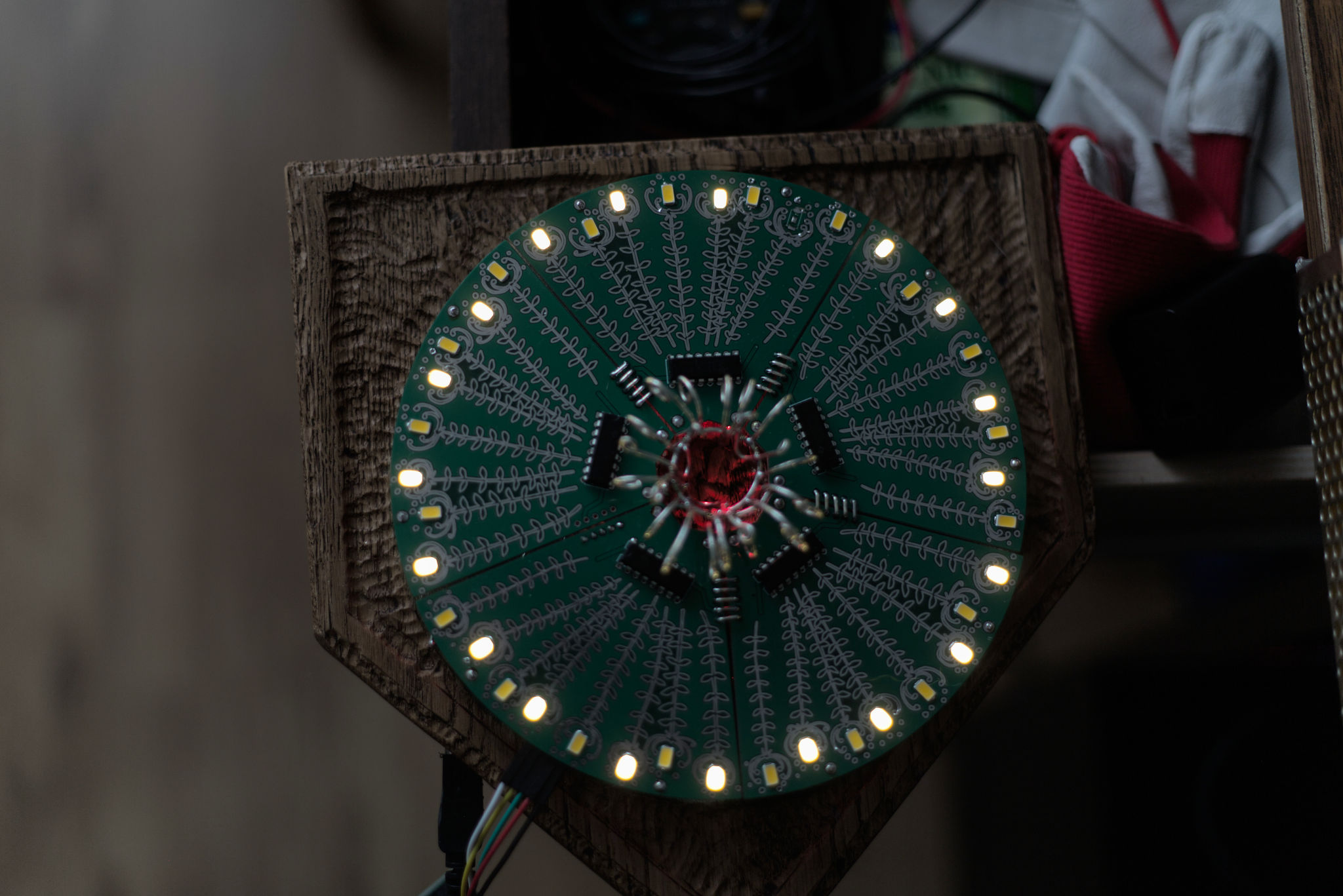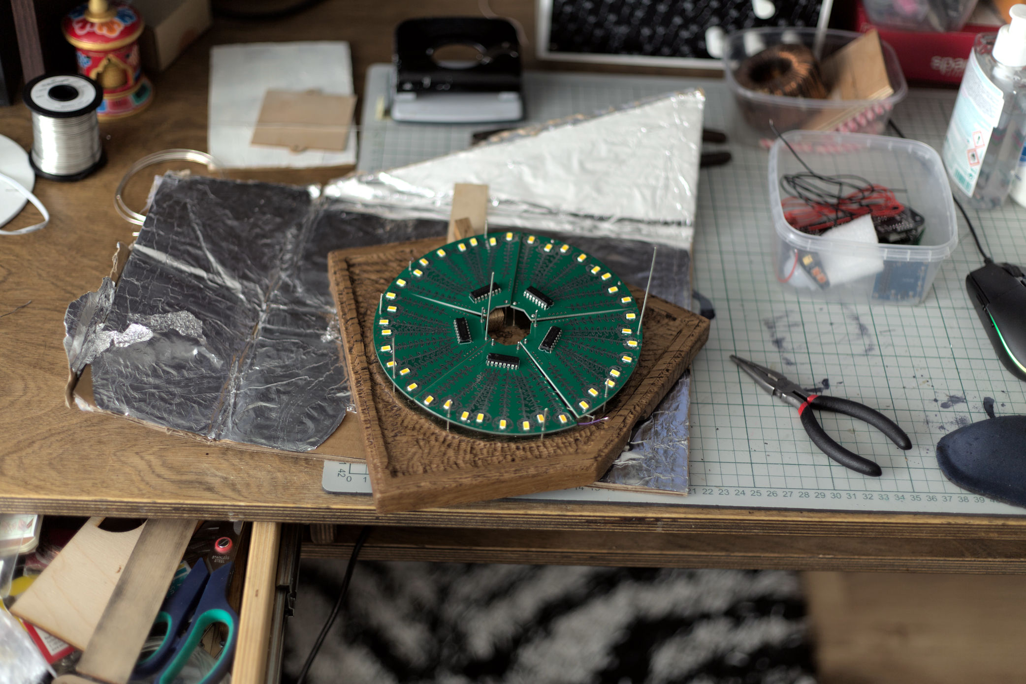 Green PCBs and oak wood are a nice combination.