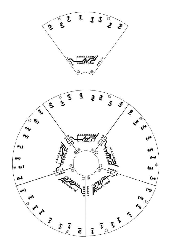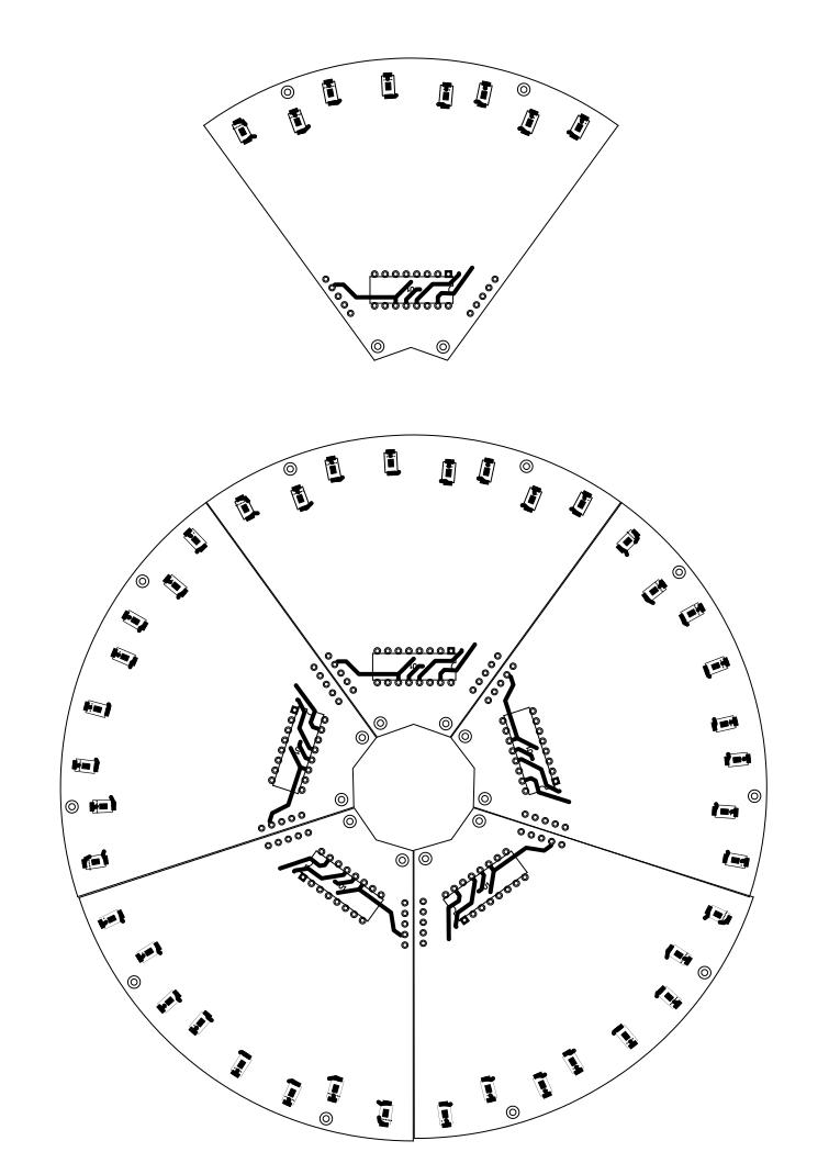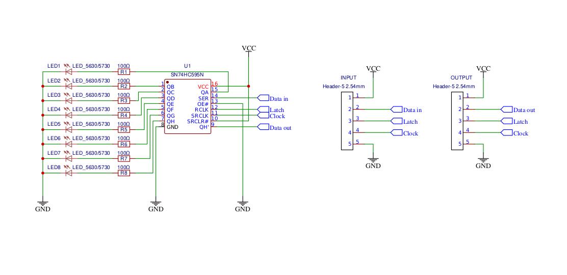 There is five shift-register to control LEDs.The Arduino’s original shiftOut() function is quite slow. I had to simplify it to make it work with my configuration without noticeable flickering. Board Arduino Pro mini 16Hz Atmega328 5v.