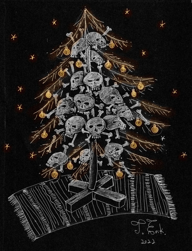 My conflicted feelings about Christmas Posted byTauno Erik4. Dec 2022Posted inMissing GirlTags:art, christmas, drawing, illustration, jõulud, joonistus, kuusepuu, pealuud, pencil, sculs, tree My conflicted feelings about Christmas are summarised in these images. Share this: Share on Facebook (Opens in new window) Facebook Share on X (Opens in new window) X Share on Pinterest (Opens in new window) Pinterest Like Loading... Related