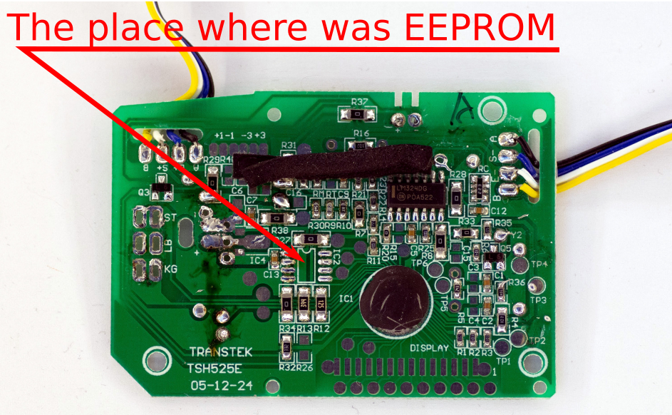 The EEPROM is 24C02N. It uses i2C to communicate and is relatively easy to read/write. I used Arduino Nano for that.