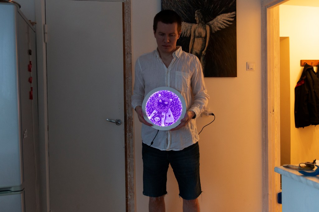 I had this, not working, ceiling lamp that collected dust. And I was wondering what to do with it and I found a way how to turn it into artwork.