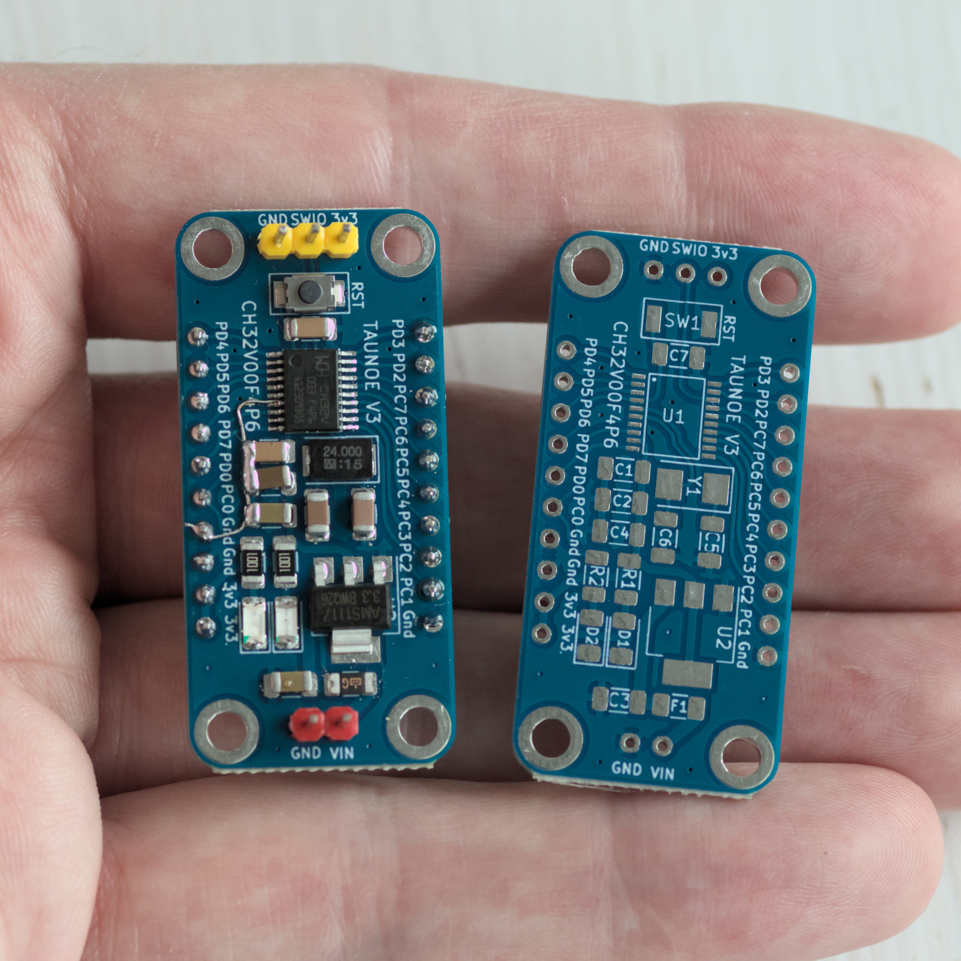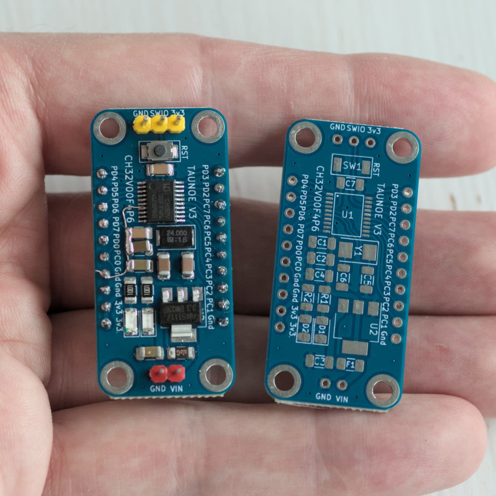 Finished my second version of the CH32V003F4P6 microcontroller board.