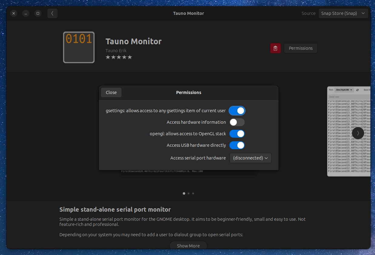 I built myself a Serial Monitor app that integrates with the GNOME desktop. Learned a lot about how to build GTK4 apps and publish them as Flatpaks or Snaps.