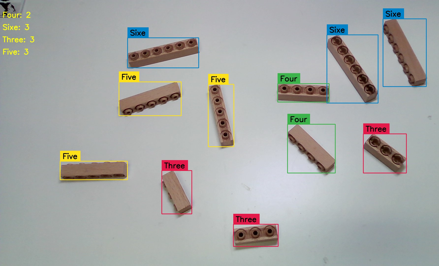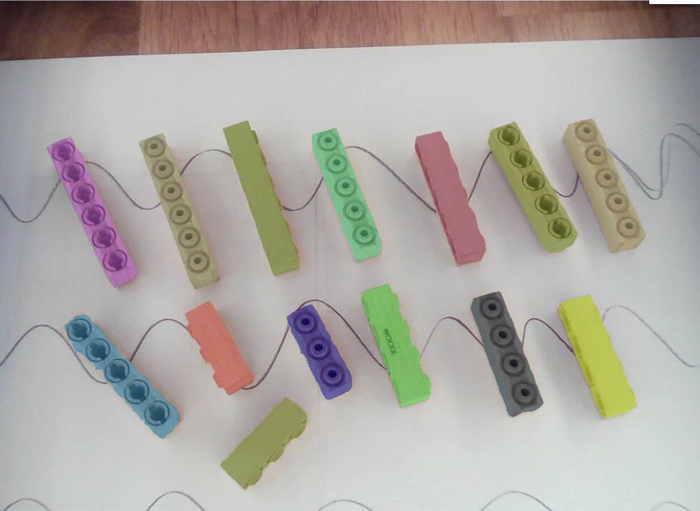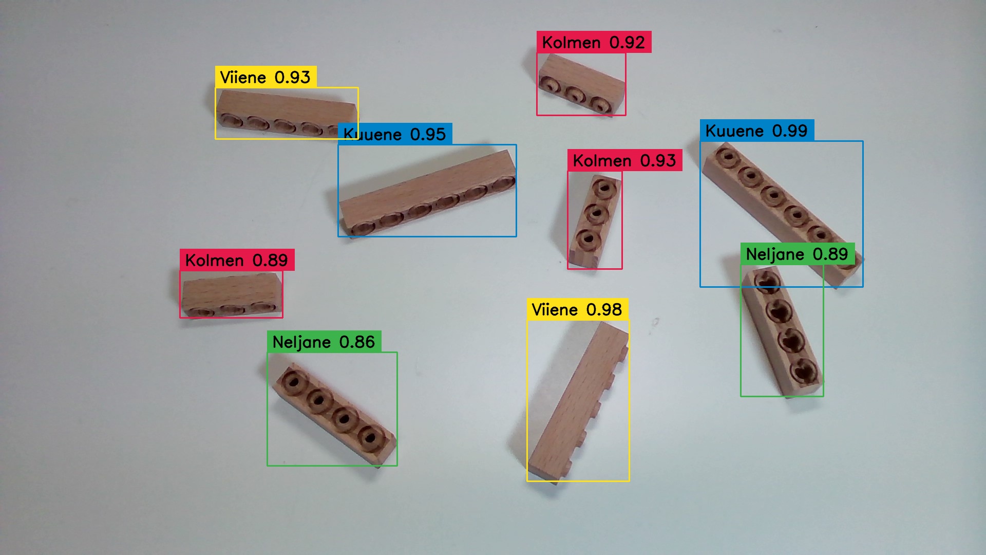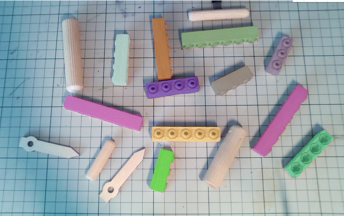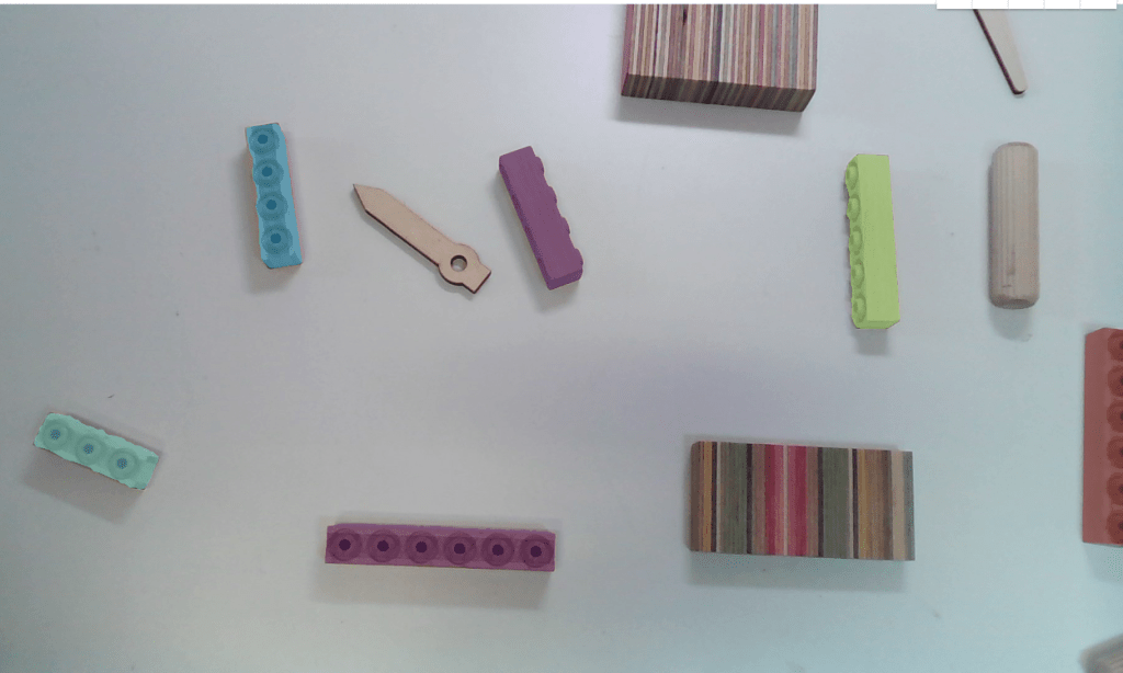 My first goal was to test whether can I make machine vision projects that identify different sizes of these wooden bricks from Woodi. I had four different sizes of bricks.