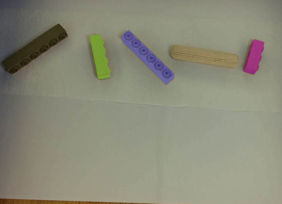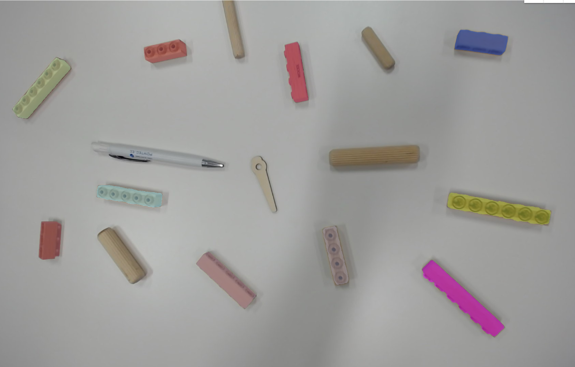 First I made a bunch of images separately of each brick on a different angle. Then many of them together. I used my two webcams and cell phones. After some testing, I started to add some similar sizes wooden objects to images so the model will separate the bricks from other stuff.