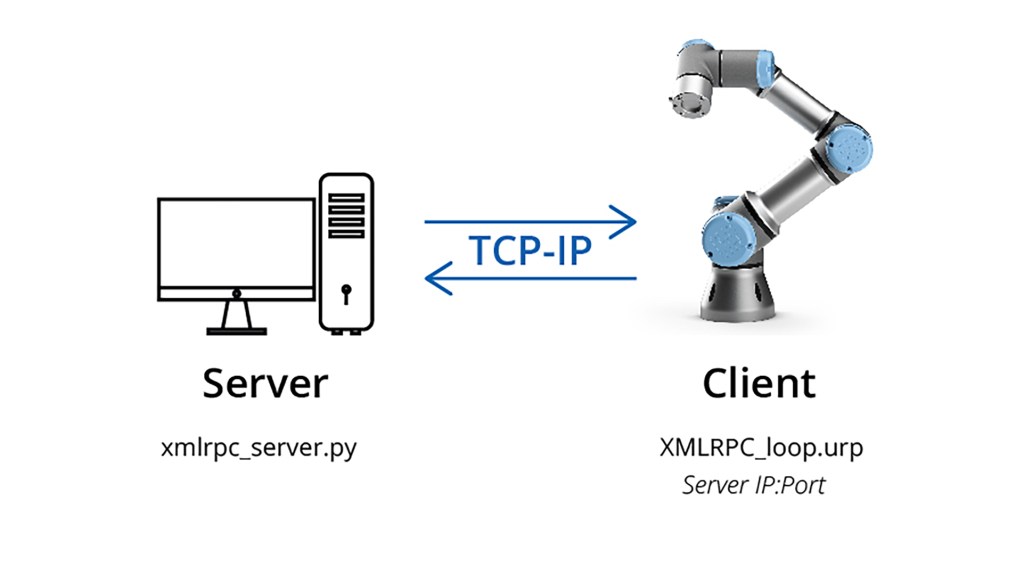 This is my demo code on how to use the XML-RPC to communicate with Universal Robots (UR). UR is the client and PC is the server that runs the Python script. On the demo code, the script only changes the x coordinate.