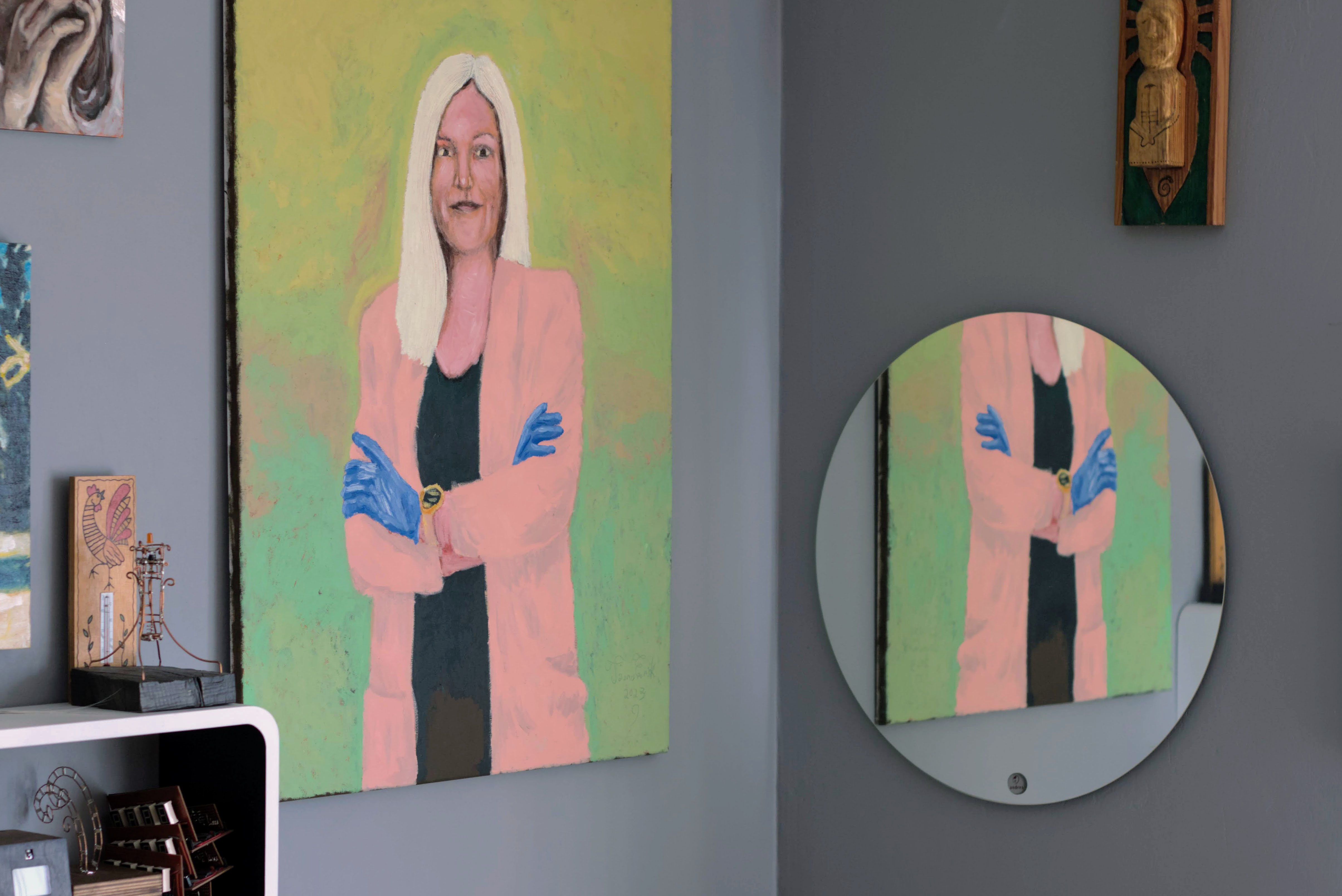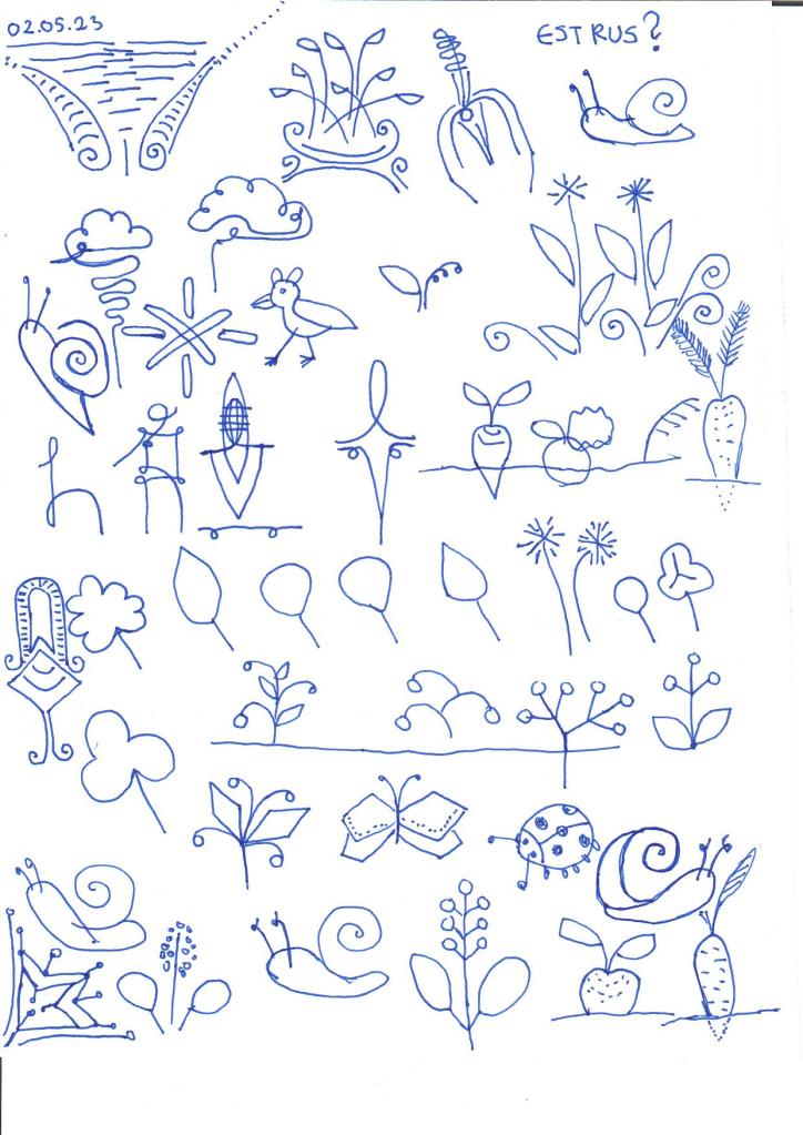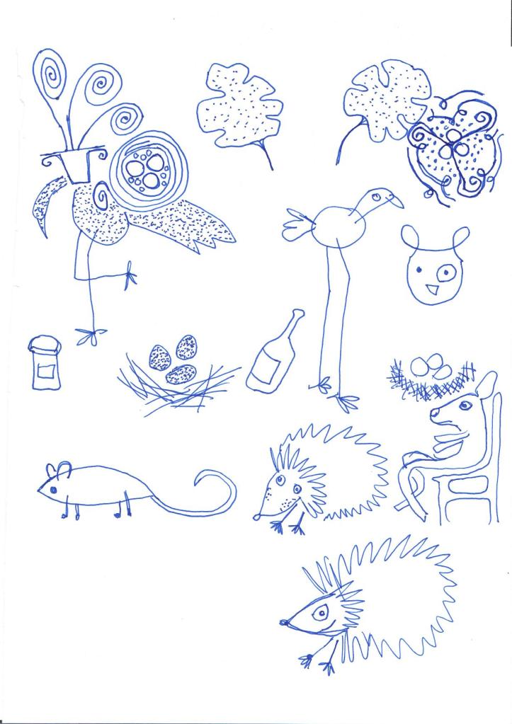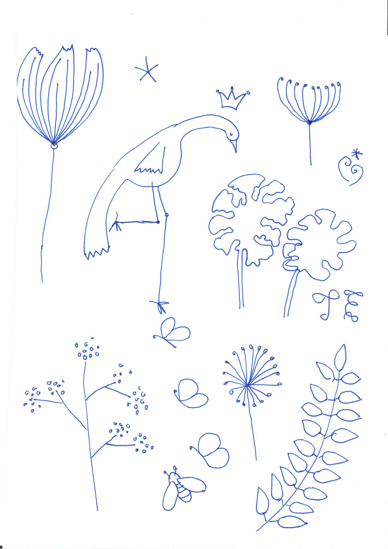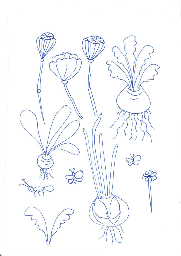 My drawings on this planting table. First I drew on paper. Then I drew over the vector format. Printed on wood.