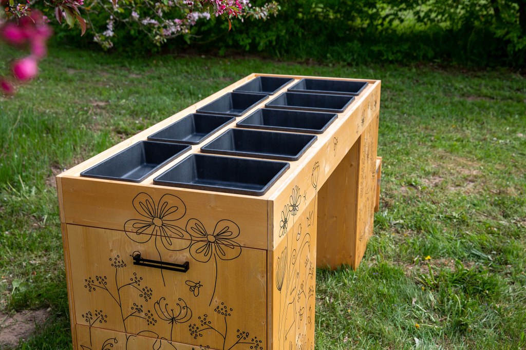 The planter table/chest allows several generations to grow plants together. The table is designed in such a way that even a person in a wheelchair can move around it. In addition, children can help by using a special extendable standing platform that is cleverly hidden in a drawer. KidsLikeUs is a new international INTERREG Baltic Sea region project where TSENTER participates as a partner.