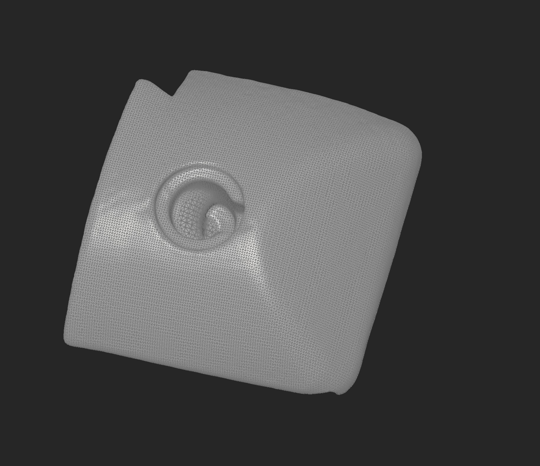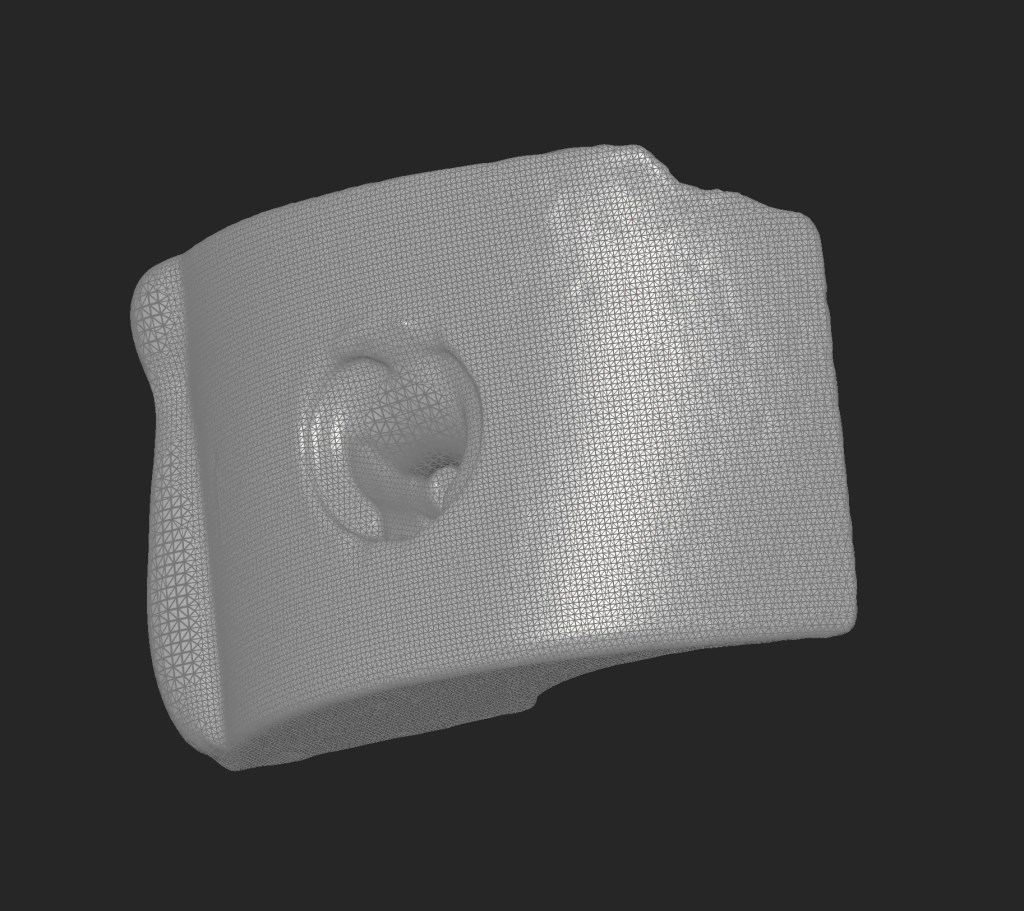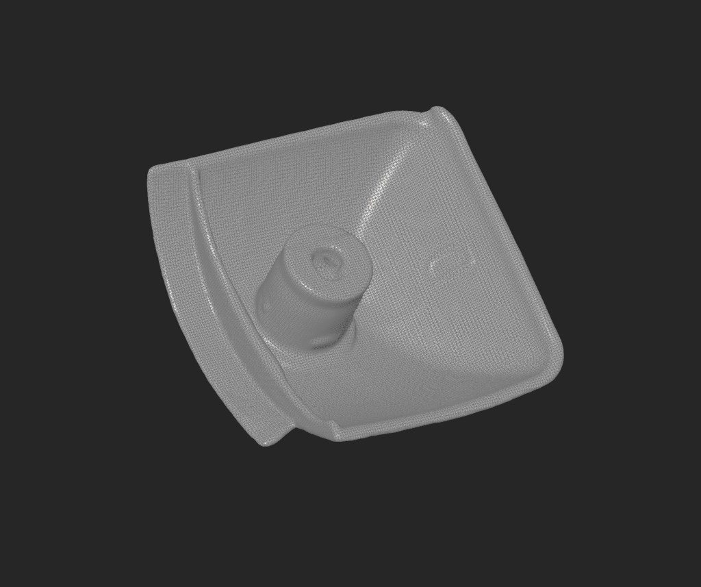 Objekti 3D-skanneerimine. Selle tulemuseks oli .stl formaadis mesh-fail. Kasutsin selleks Artec Spider 3D-skannerit, millega saab hästi kõrge resolutsiooni ja detailsusega 3D-mudeli. Ideaalsel juhul saab selle faili kohe saata 3D-printerisse, kui see mudel on täpselt selline, nagu meil vaja on.