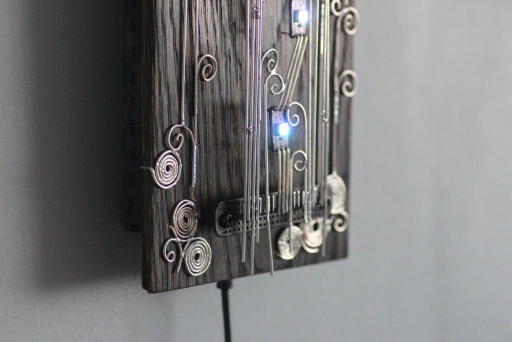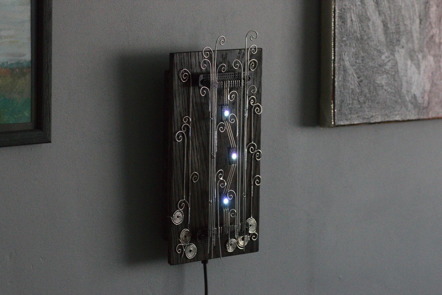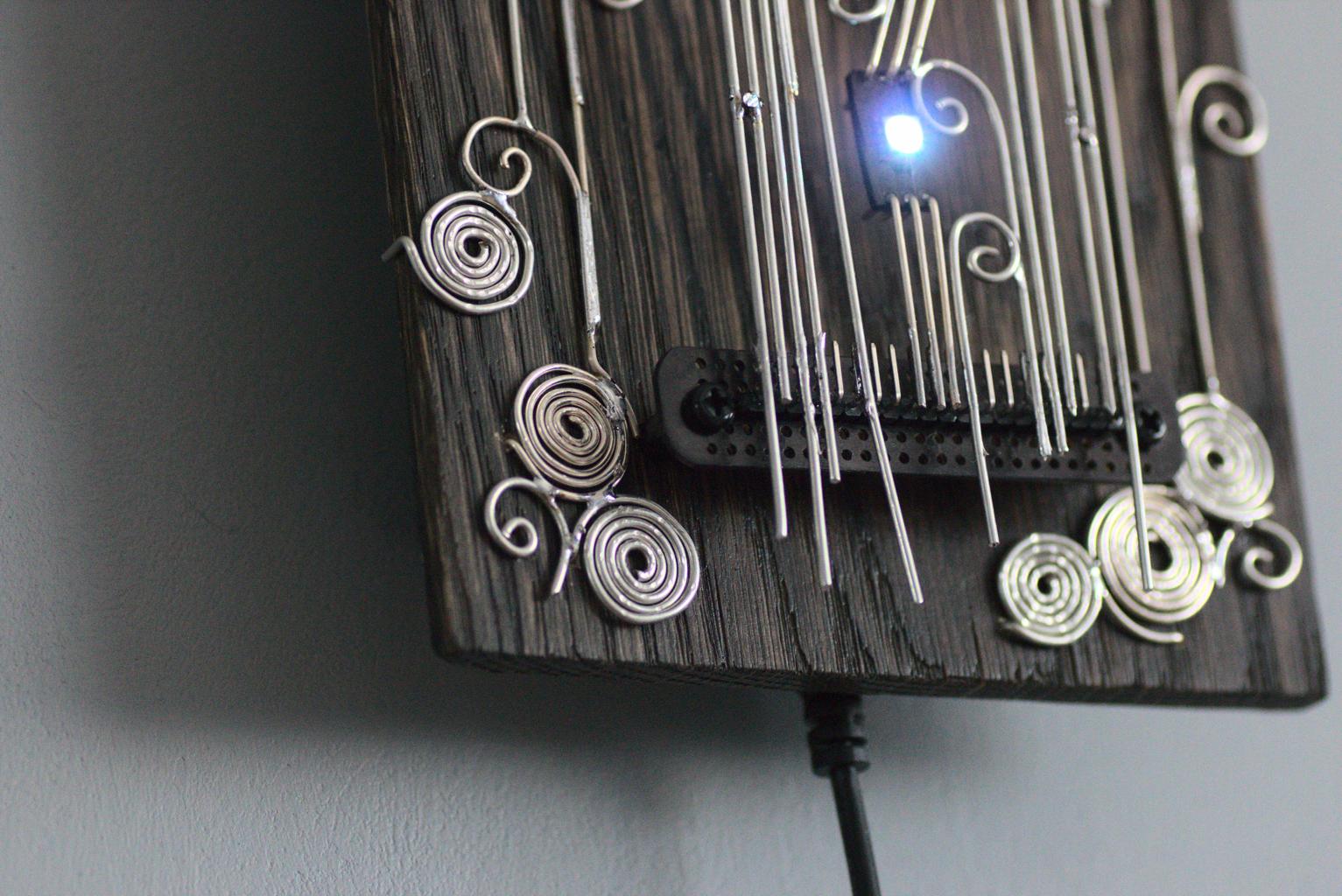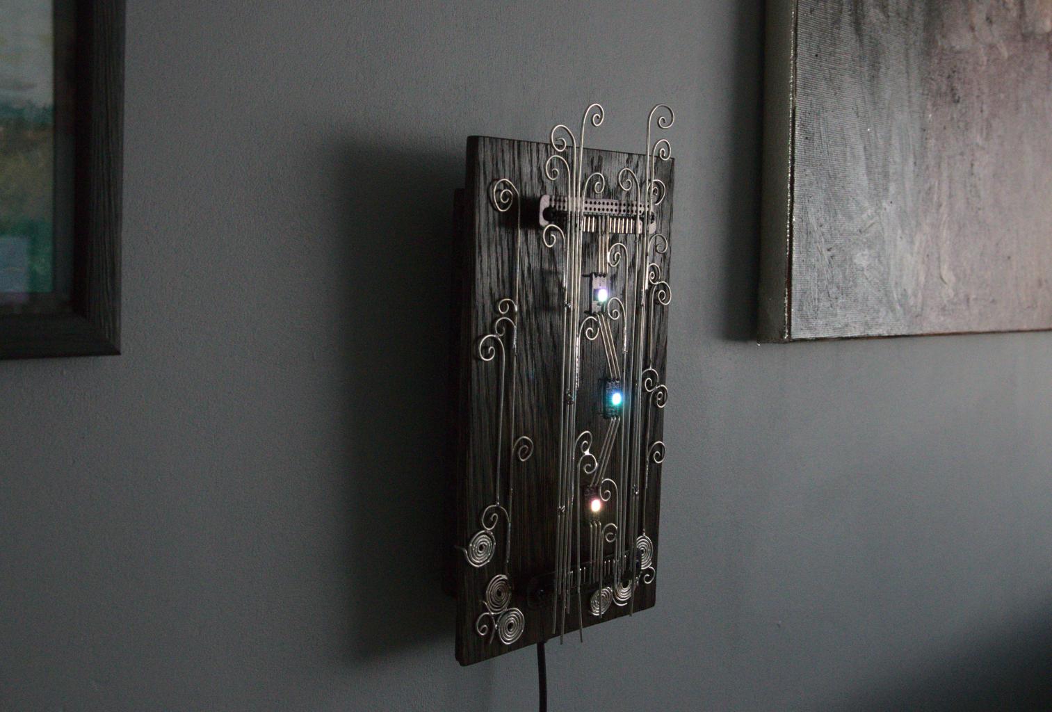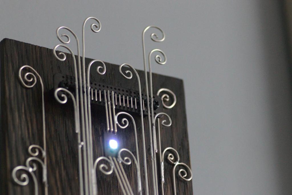 “Kolm silma” is an electronic sculpture with three eyes (RGB LEDs). It changes LEDs’ colours when it detects movements.