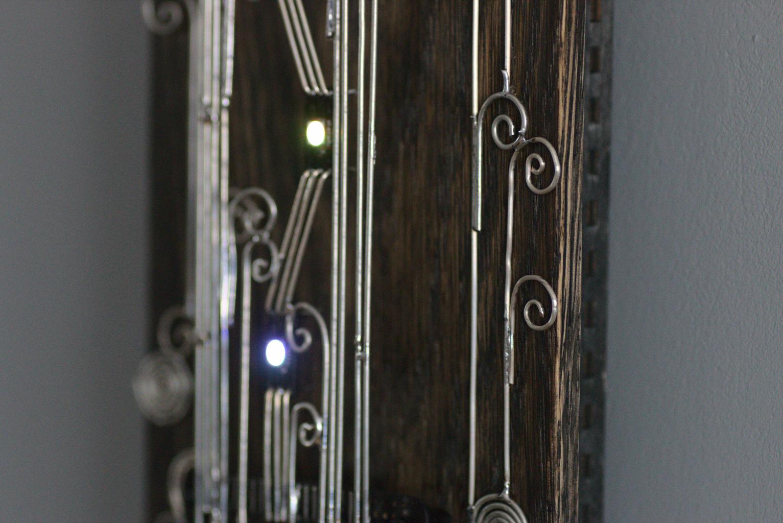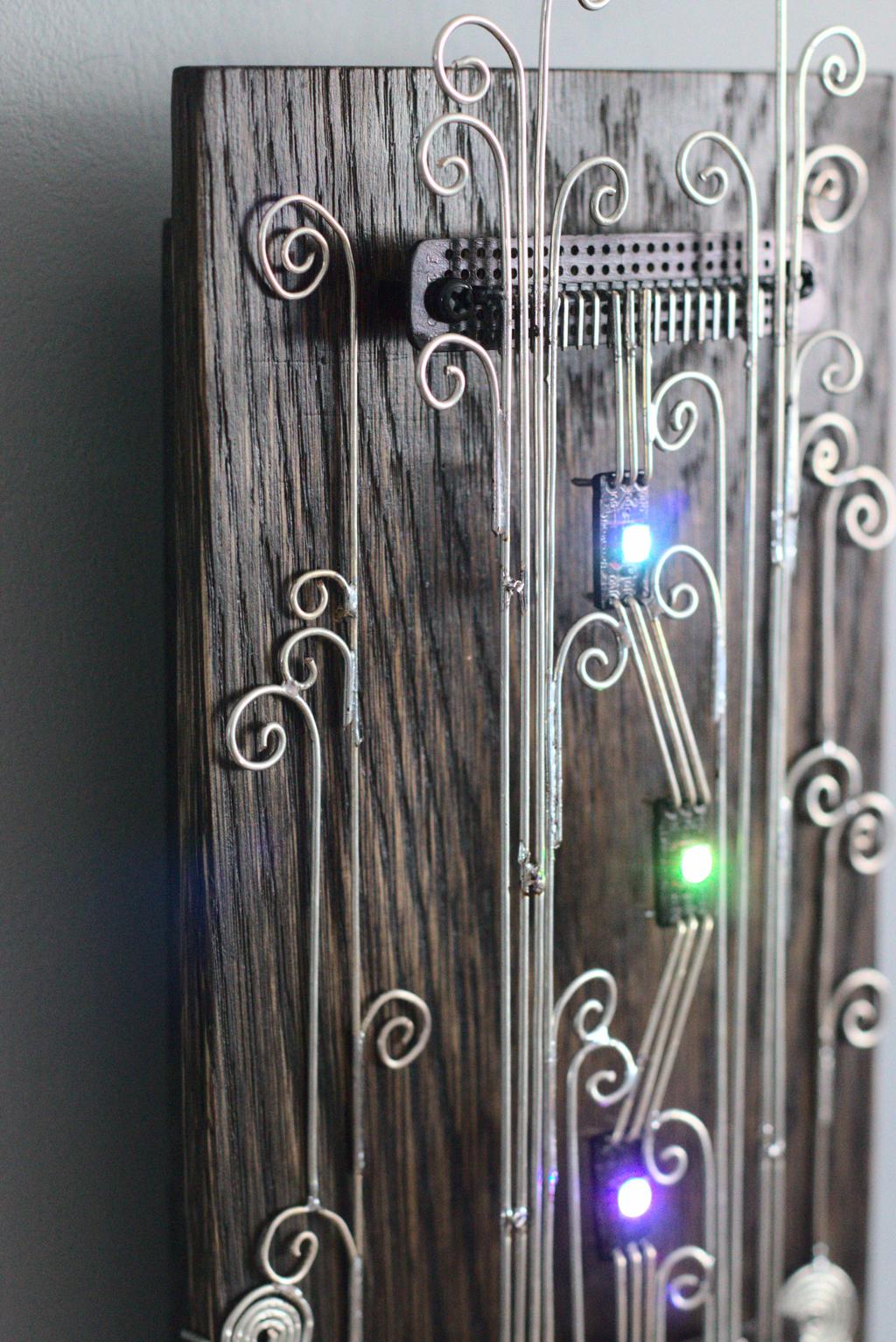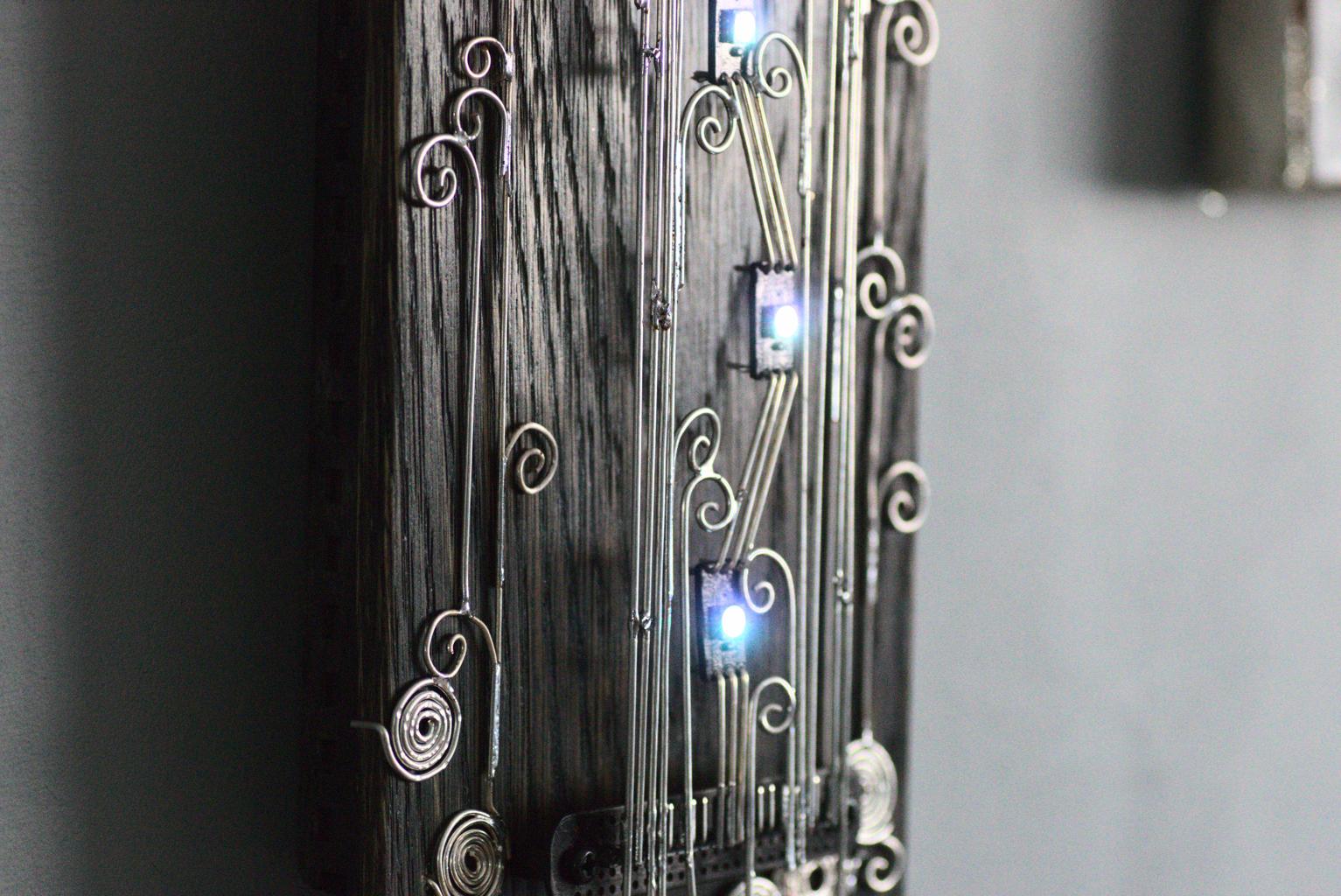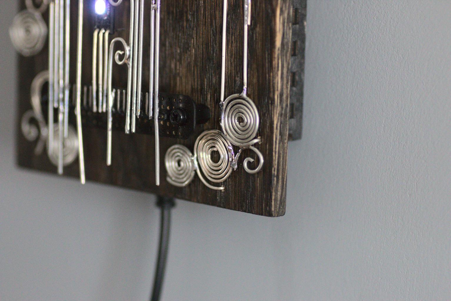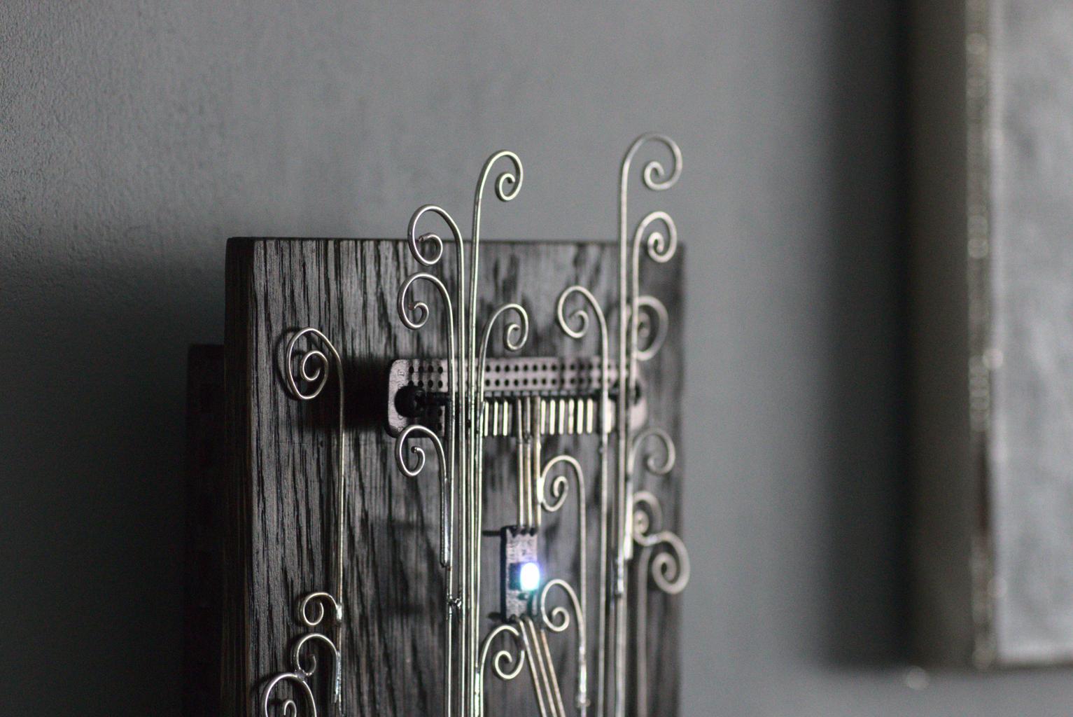 “Kolm silma” is an electronic sculpture with three eyes (RGB LEDs). It changes LEDs’ colours when it detects movements.