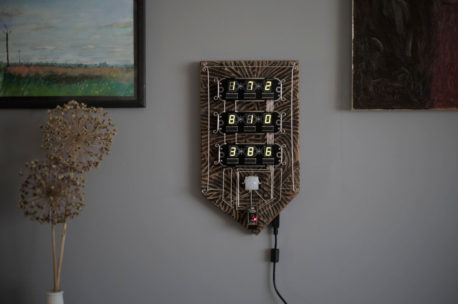 If you stand in front of it, it measures distance between you and displays it.