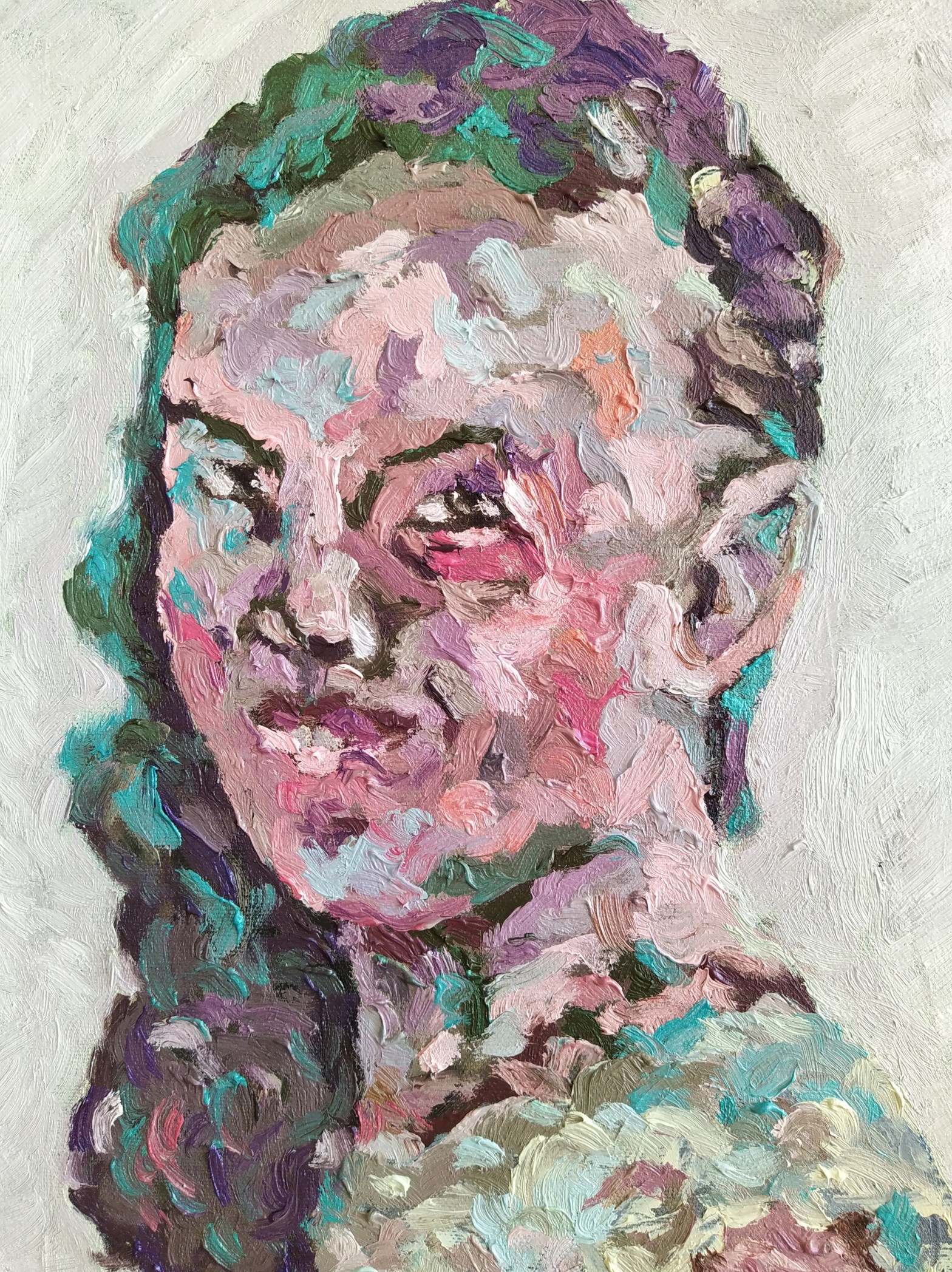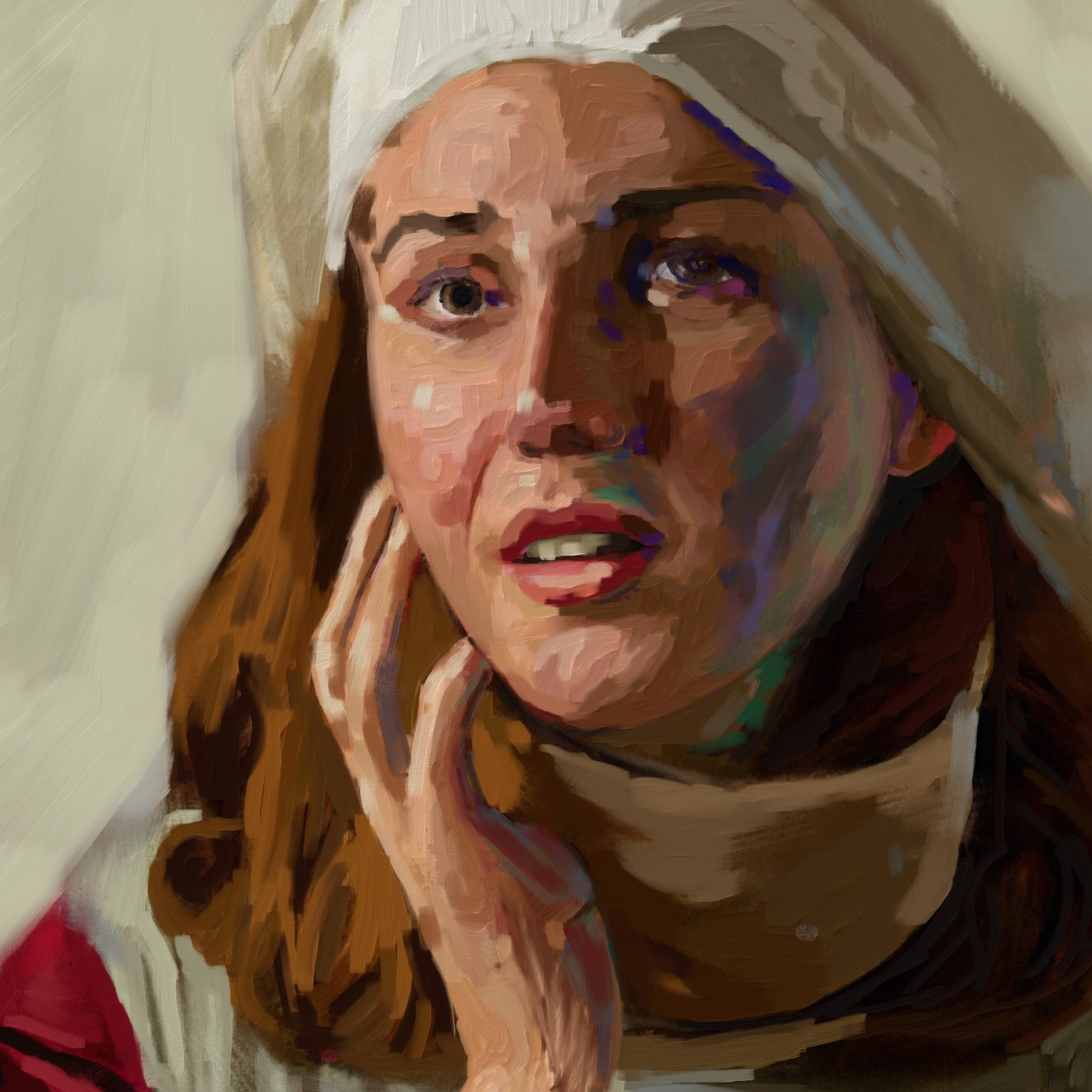 Two digital painting experiments using AI (Dall-e) generated images. And then overpainted by me. The phrase I used to generate images: “A Renaissance painted portrait of a woman who doesn’t know who she is”. Images generated by DALL-E: My overpainted versions: Details: