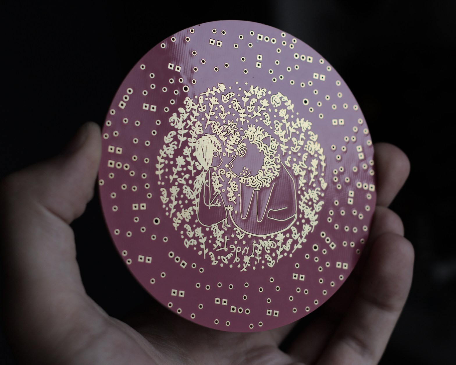 New and pink with gold! One of my experiments to combine electronics and illustrations. And actually, it will be a sculpture.Assembly will be difficult because some holes and components are purely decorative. But others must be precise. Final PCB made by PCBWay: Different PCB colours at different angles! Design ideas and sketches. Although there isContinue reading “Pink PCB, why not”